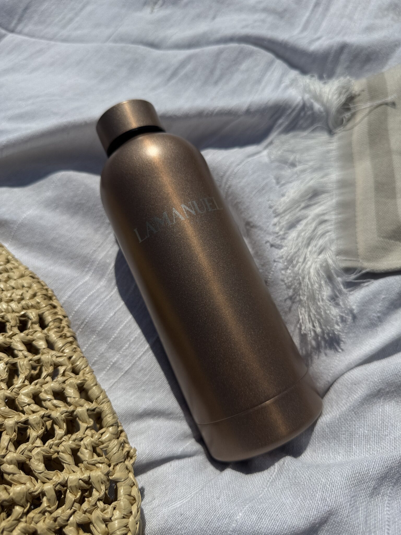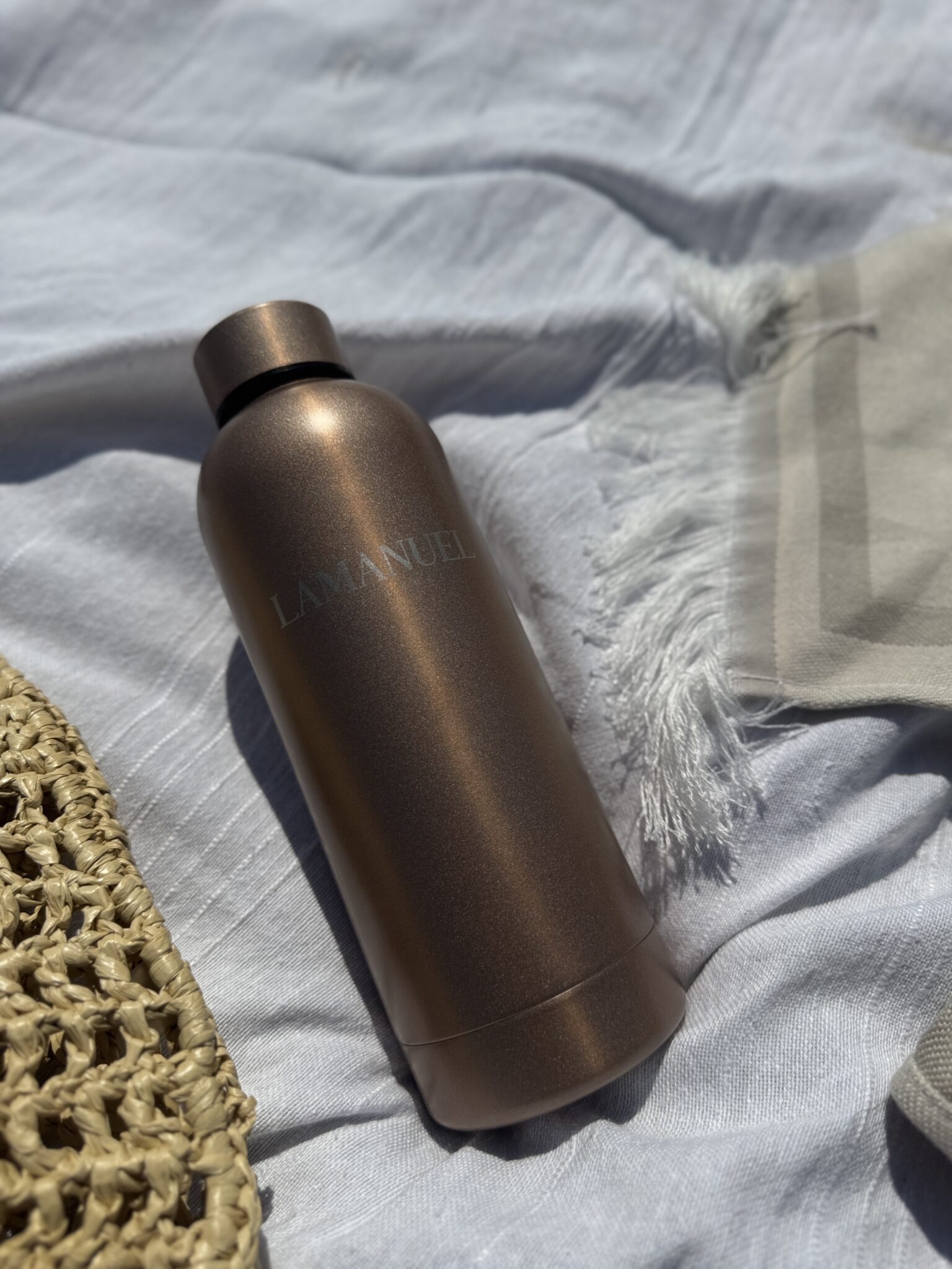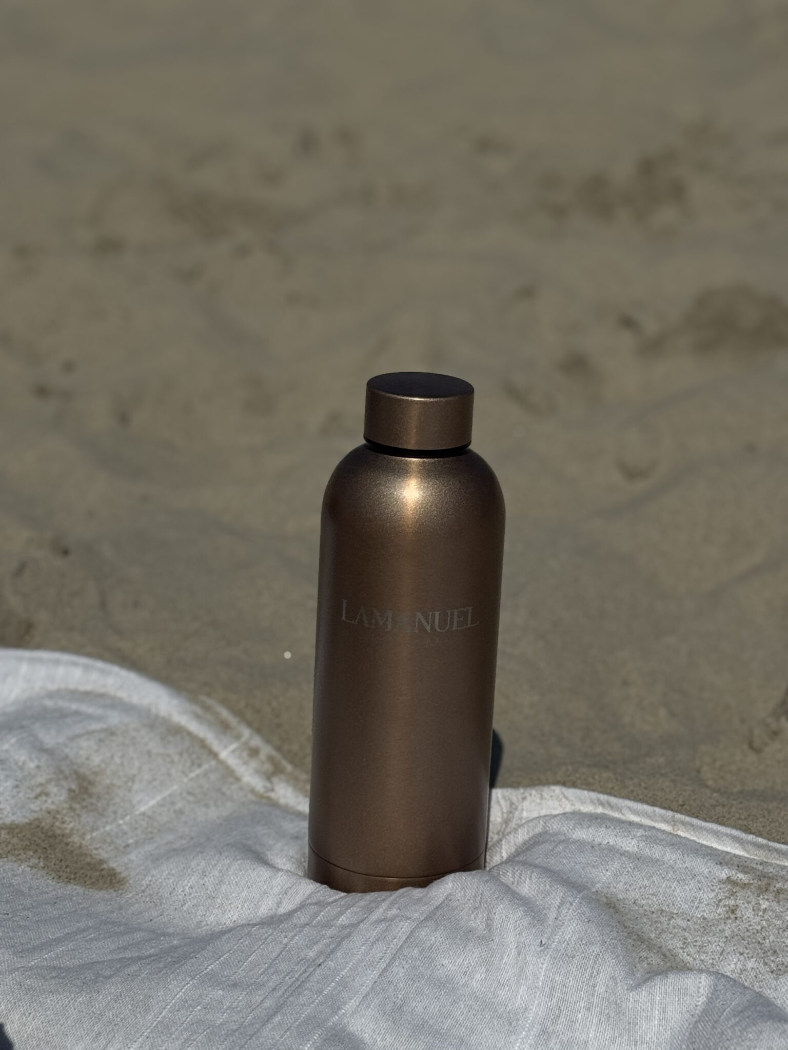 Minimalistyczna butelka z recyklingowanej stali nierdzewnej o pojemności 500 ml. Dwuścienna izolacja próżniowa chroni temperaturę napoju przez długie godziny.