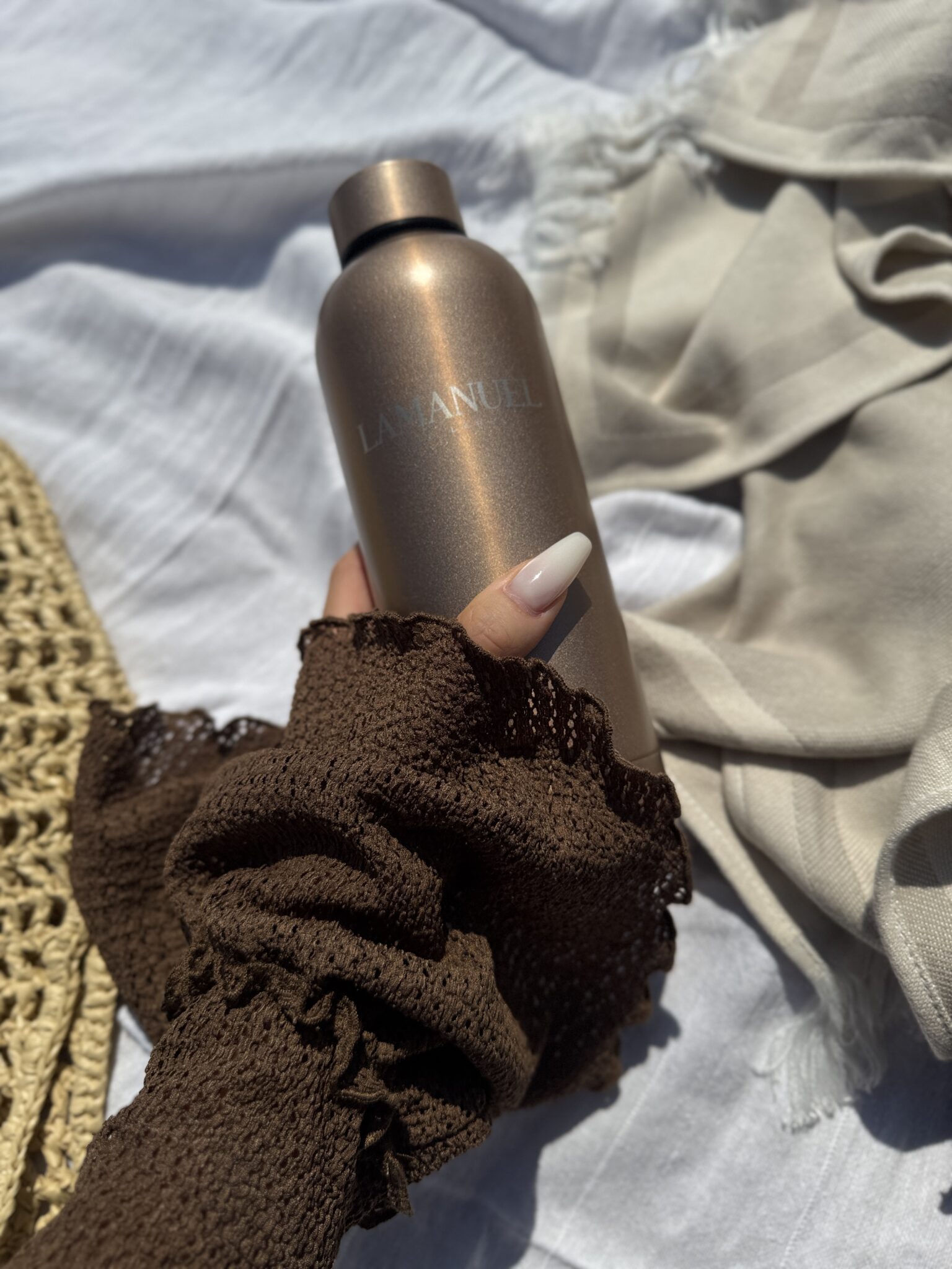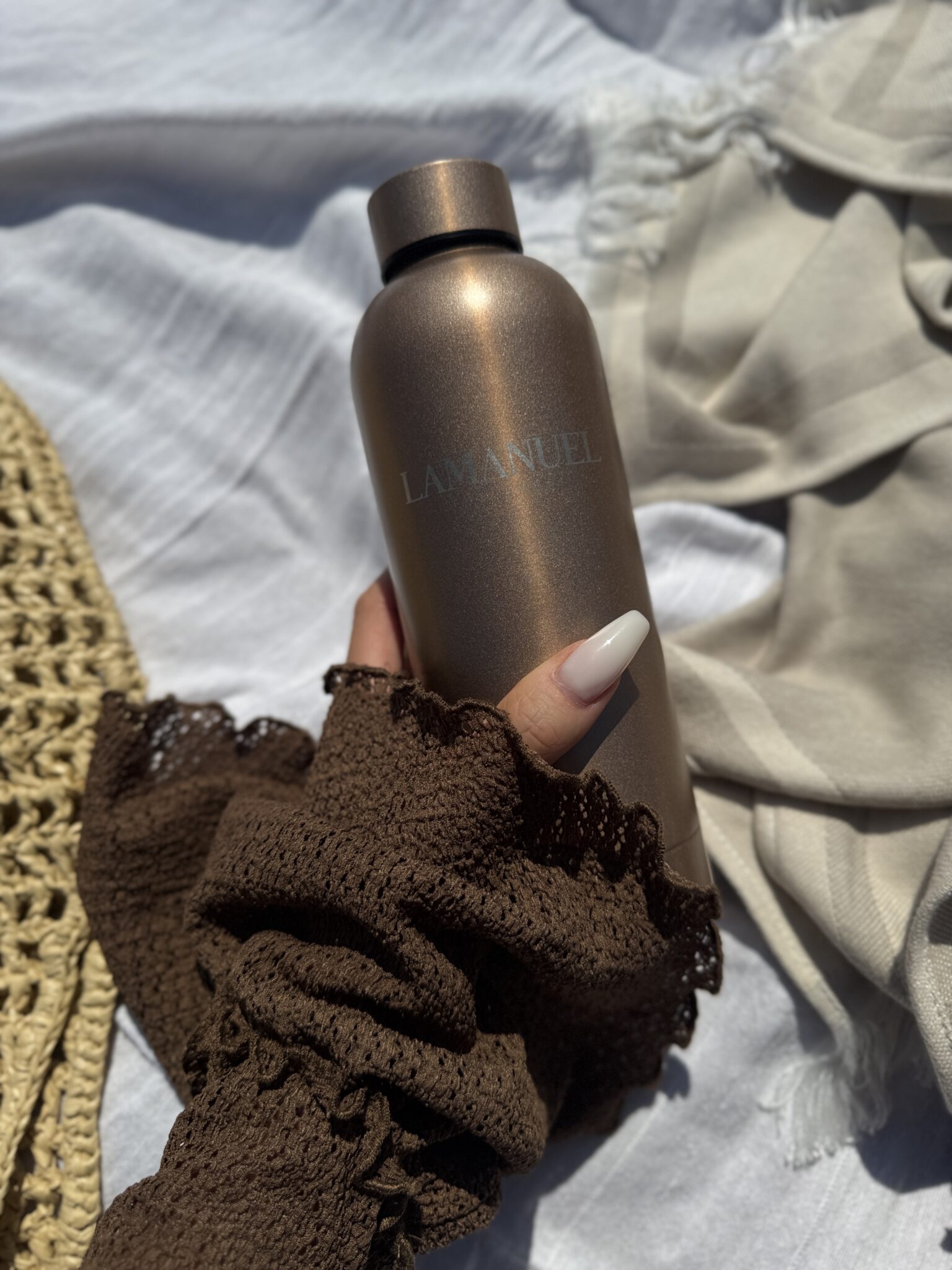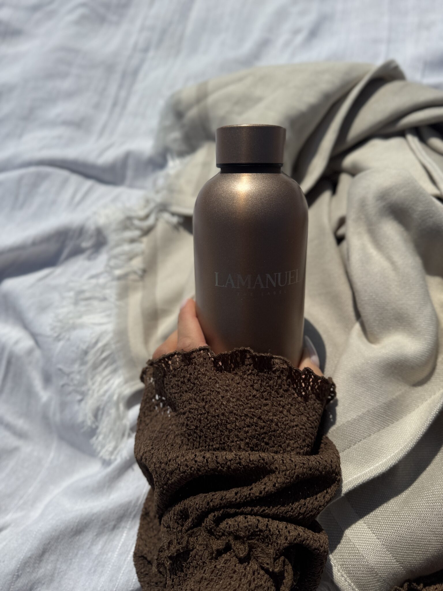 Minimalistyczna butelka z recyklingowanej stali nierdzewnej o pojemności 500 ml. Dwuścienna izolacja próżniowa chroni temperaturę napoju przez długie godziny.