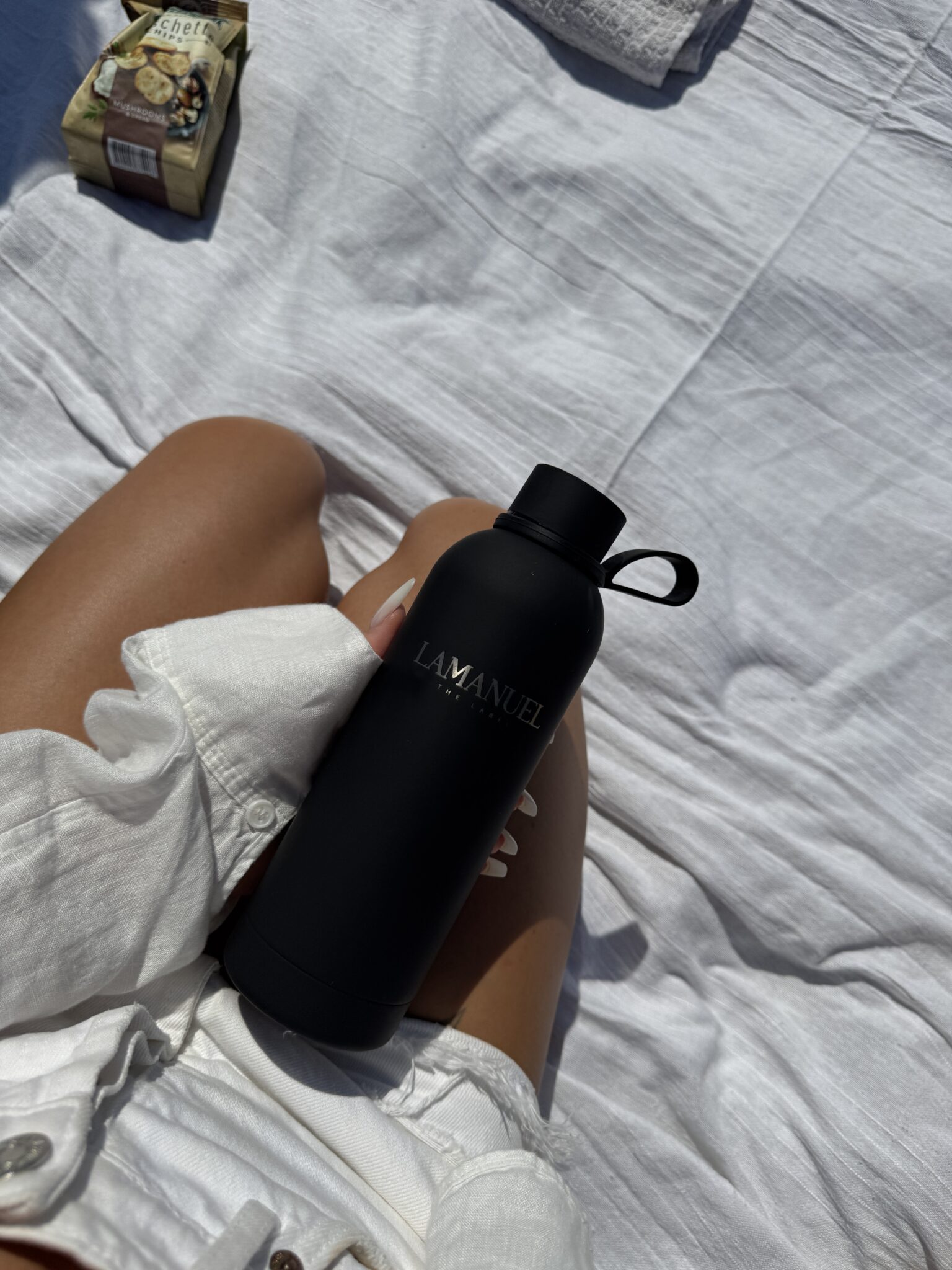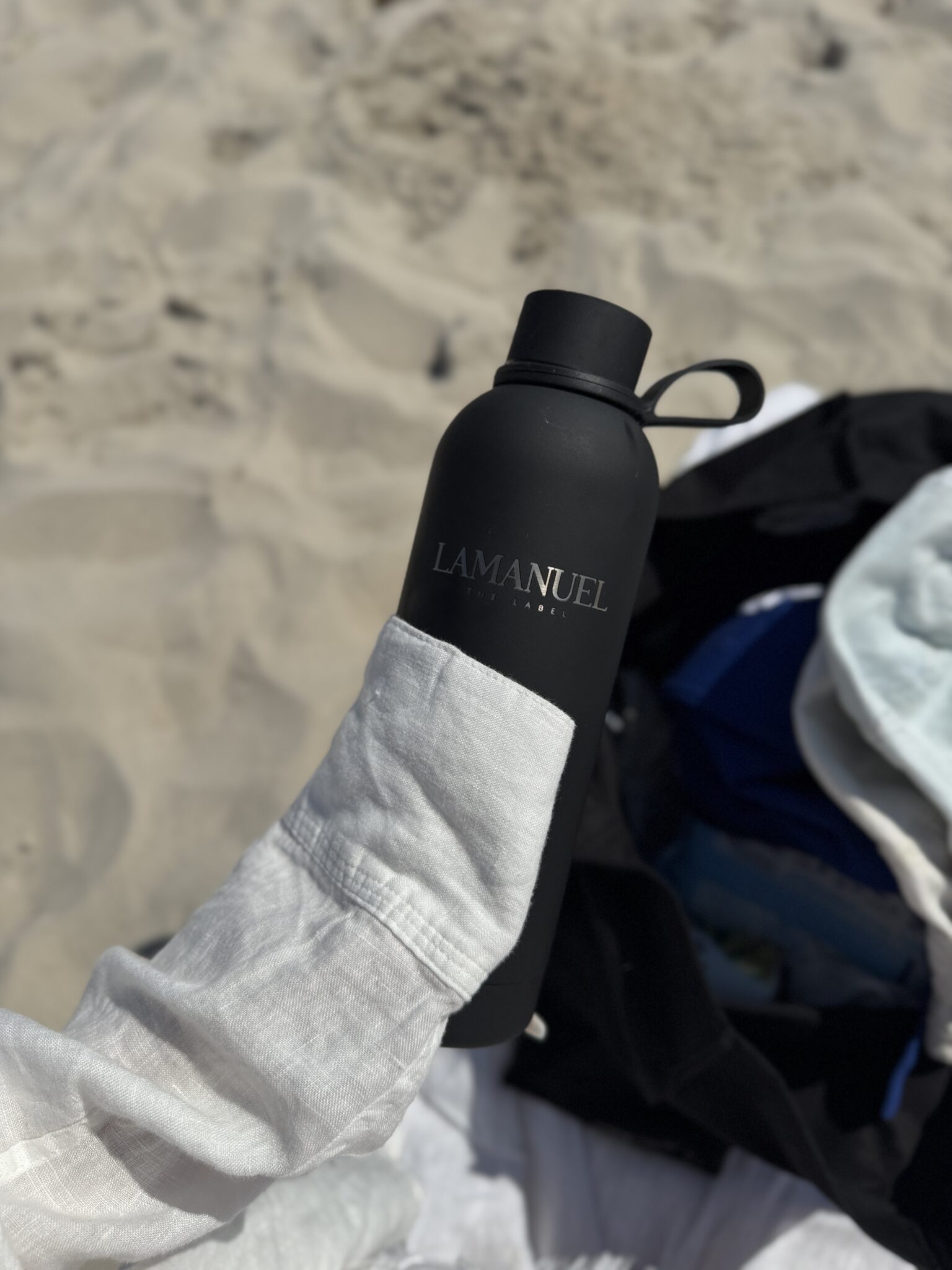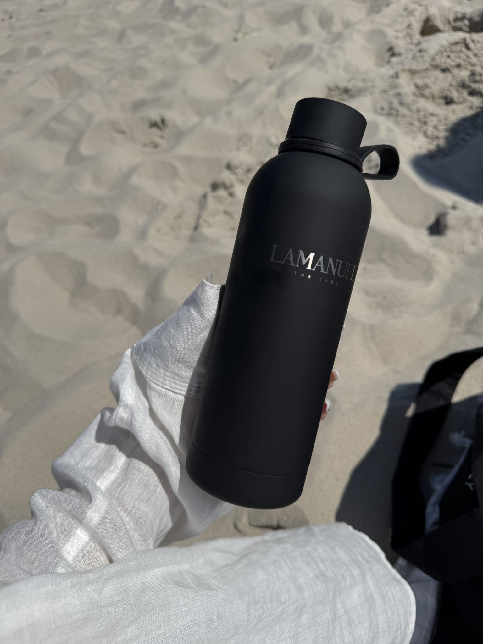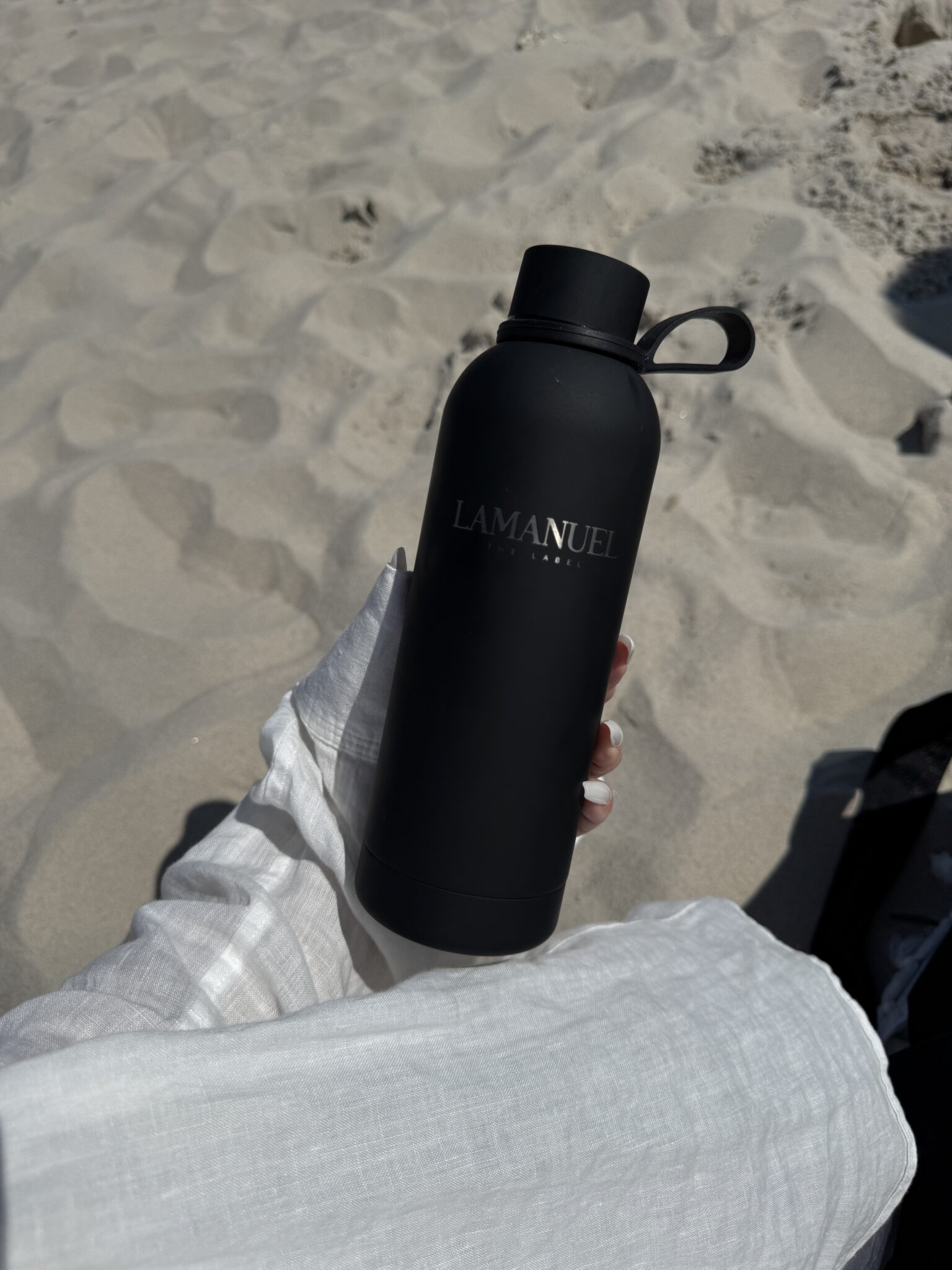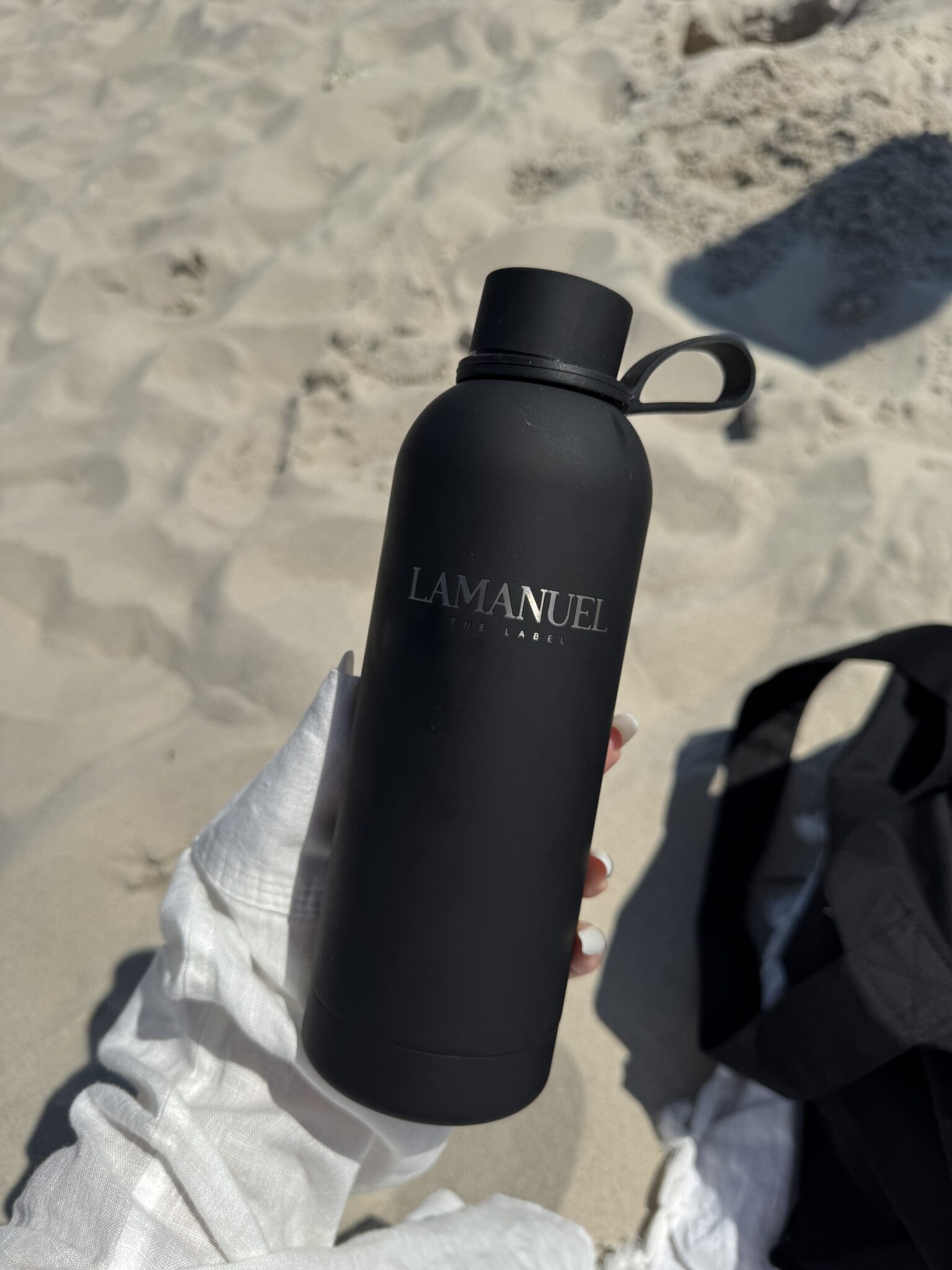 Dwuścienna butelka z izolacją próżniową z recyklingowanej stali nierdzewnej (90% z recyklingowanej stali nierdzewnej i 10% ze stali nierdzewnej) z gumowym wykończeniem i silikonowym uchwytem. Pojemność: 500 ml.Idealna do codziennego biegu – od porannej kawy po wieczorny spacer. Stylowa, szczelna, zawsze pod ręką.