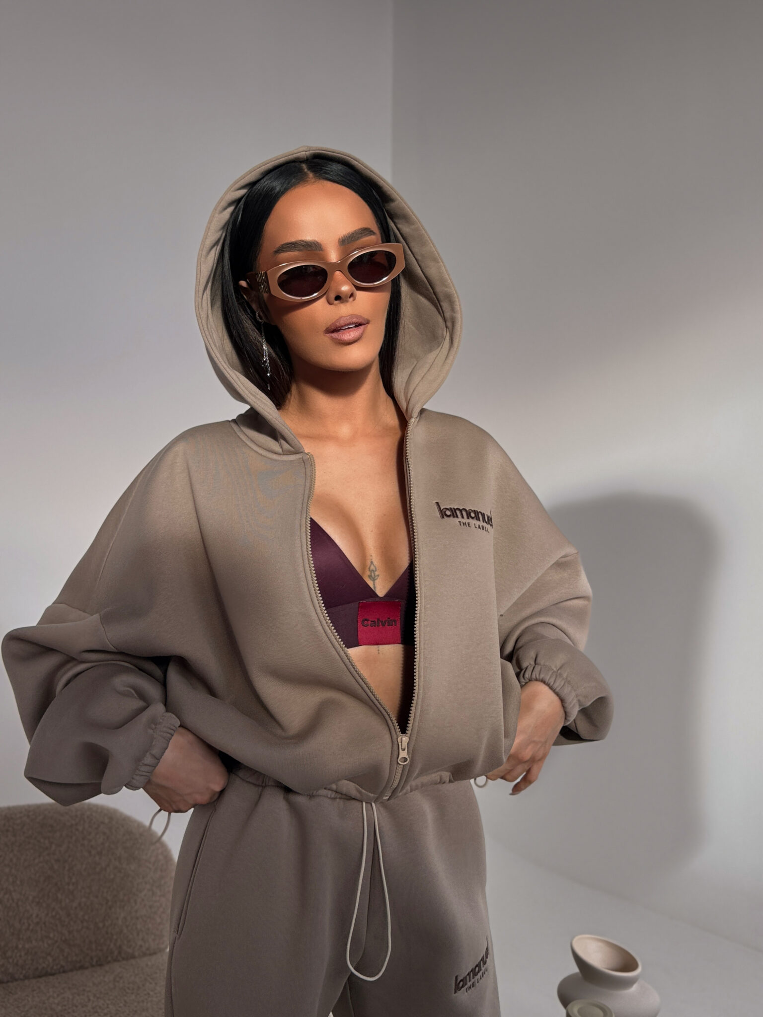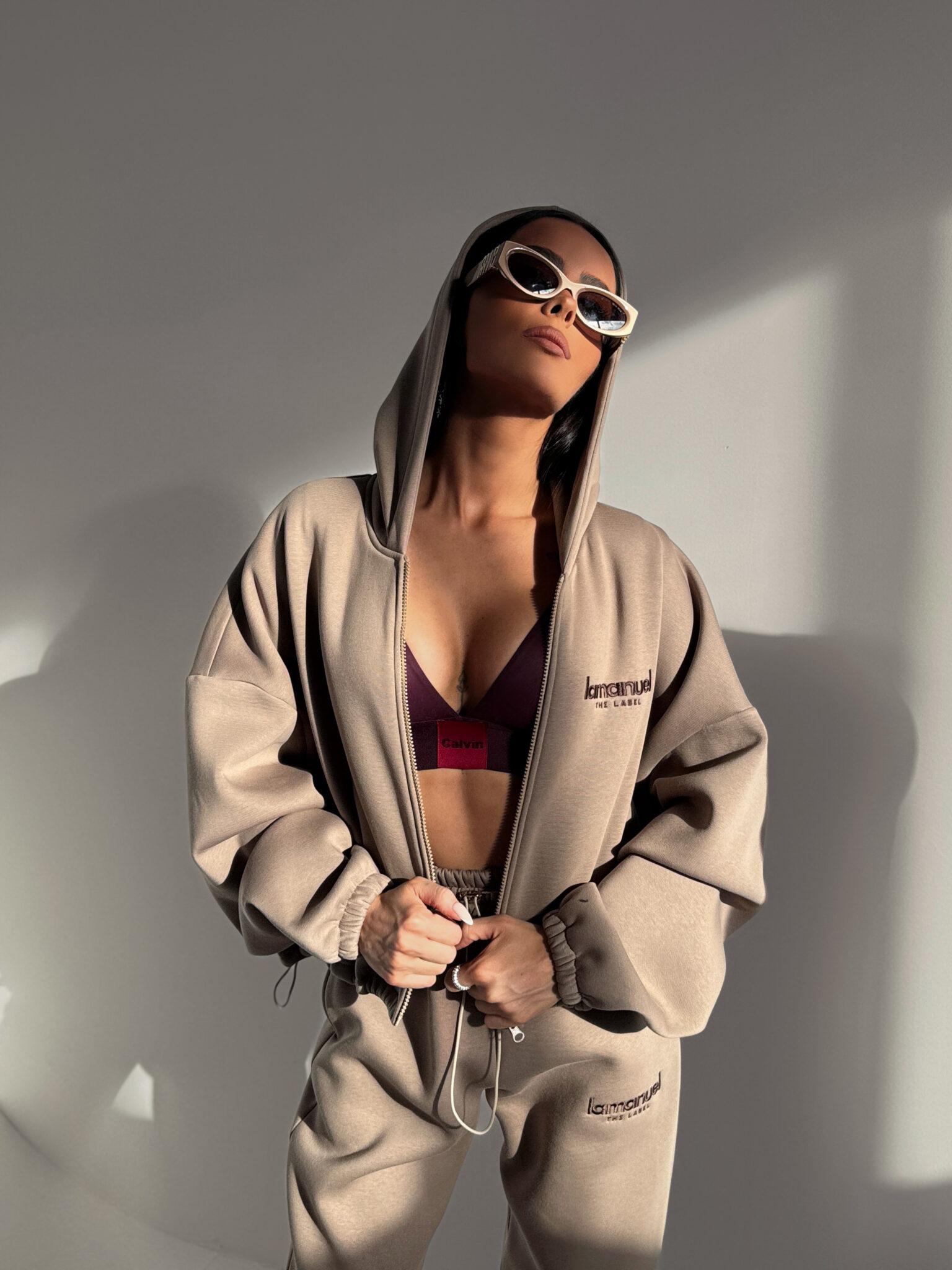Bluza, która robi cały look, zanim jeszcze ją zapniesz – oversize’owy krój, miękka drapana dzianina, która otula ciało jak ulubiony koc, i detal, który mówi wszystko: solidne haftowane logo z przodu i tyłu. Suwak daje ci opcję – nosisz rozpiętą na chill lub zapiętą na efekt wow. Regulowany dół pozwala dopasować ją do siebie – podkręcasz sylwetkę albo lecisz totalnie luzem. To nie jest zwykła bluza. To bluza z postawą.Skład: 90% bawełna 10% poliester