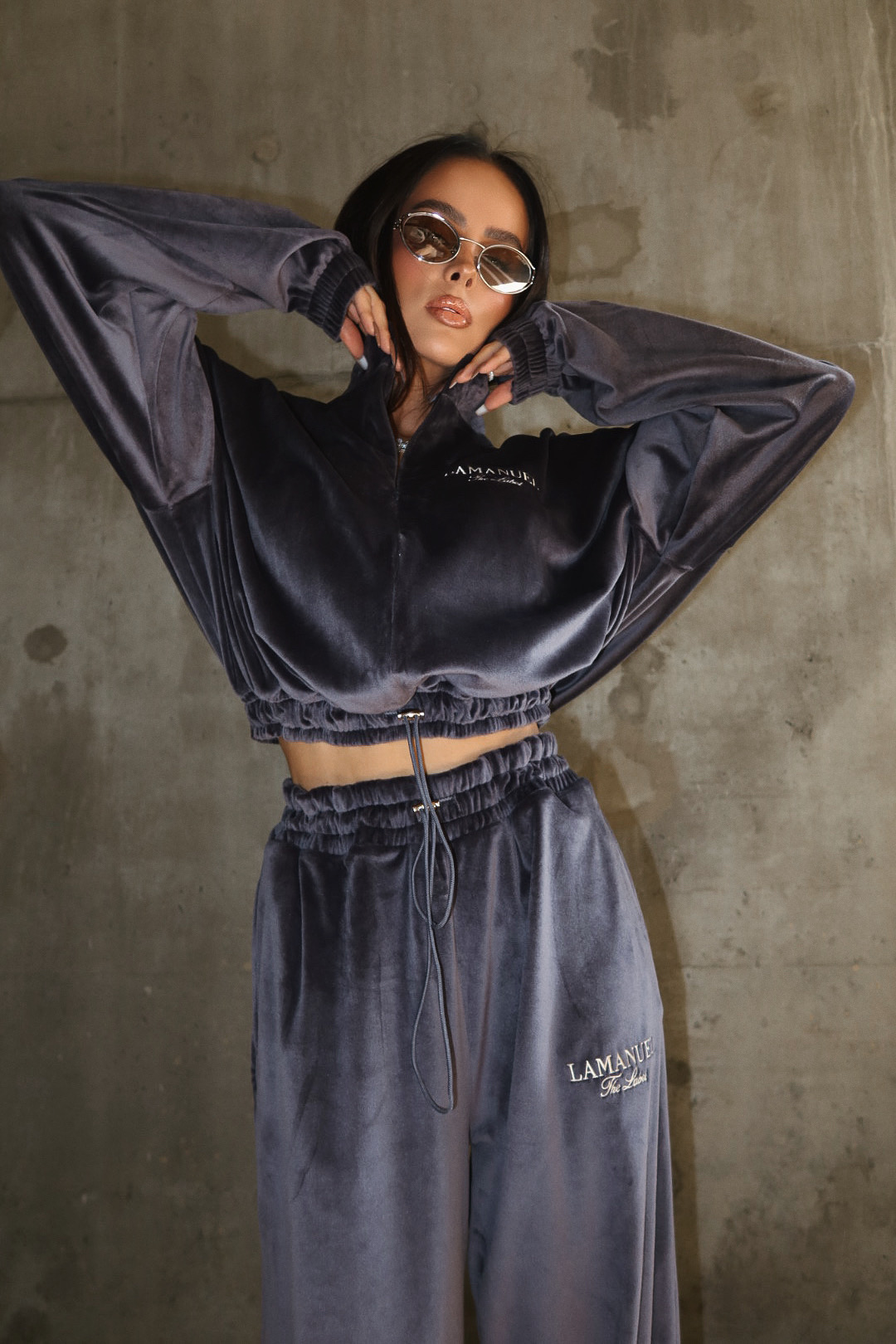 Bluza z miękkiego, welurowego materiału o lekko oversize’owym kroju. Wykończona krótkim zamkiem i regulacją w talii, co pozwala idealnie dopasować ją do każdej sylwetki. Komfortowa, ale jednocześnie bardzo stylowa — noś ją w komplecie lub solo.Skład: 95% poliester 5% elastan