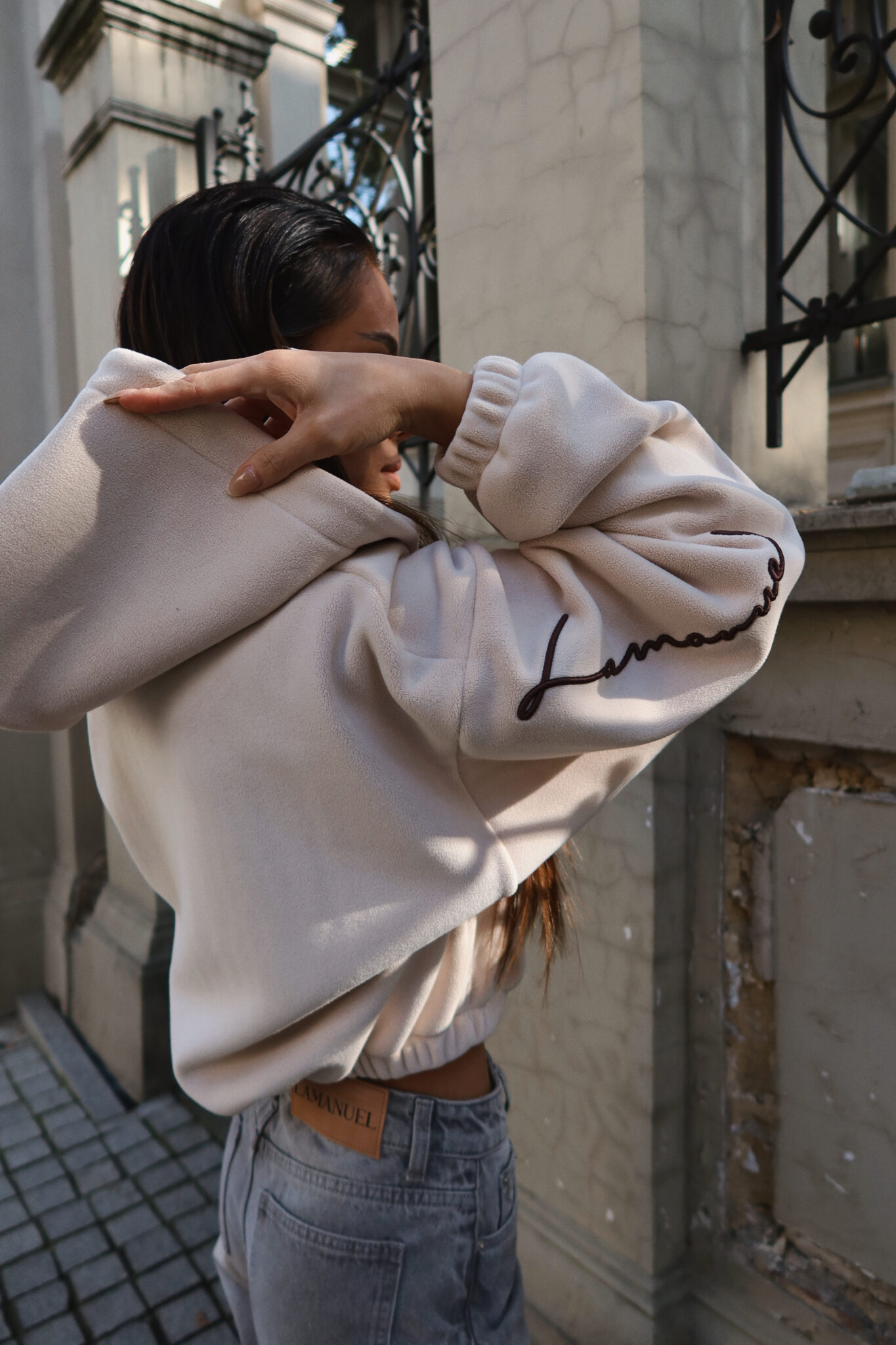 KOLOR LIMITOWANY!Miękka jak chmurka i stworzona na chłodniejsze dni. Oversize’owy krój daje totalny komfort, a hafty w formie podpisu na piersi i rękawie dodają jej charakteru. To ten typ bluzy, który narzucasz na siebie bez zastanowienia – i zawsze wygląda dobrze. Stylowa, ale bez zadęcia. Idealna do jeansów, legginsów albo w wersji sport-chic z botkami i płaszczem.Skład: 95% poliester 5% elastan