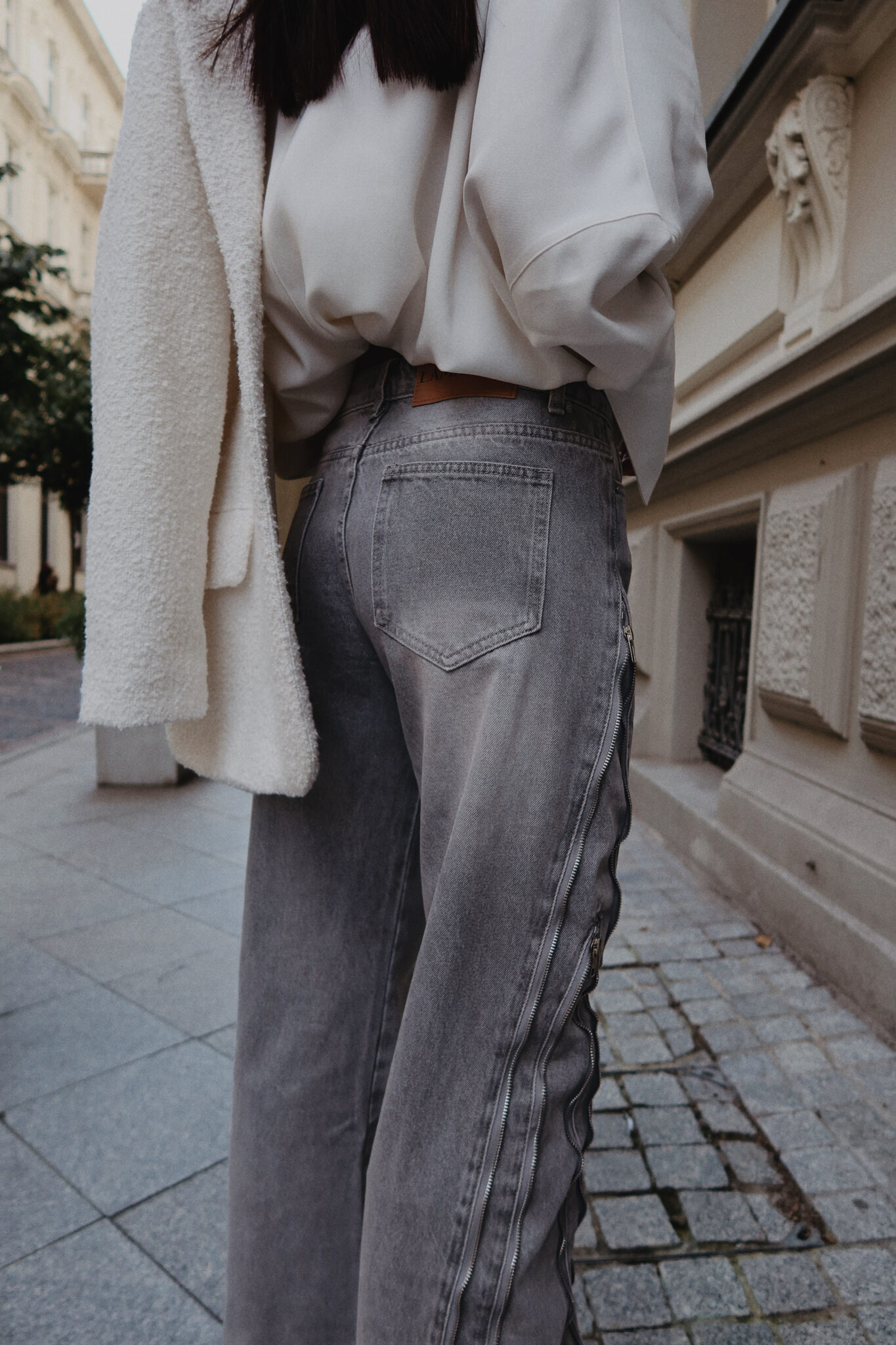 Jeansy, które nie potrzebują zbędnych dodatków, by robić wrażenie. Surowe przeszycia i suwakowe detale dodają im wyrazistości i bezkompromisowego klimatu. Nogawki są szerokie, ale dzięki suwakom możesz je dopasować do siebie – zwężając lub prostując w zależności od nastroju i stylówki. Klasyczny denim w nowoczesnym wydaniu, który gra tu pierwsze skrzypce. Noś je z marynarką, topem albo miękkim swetrem – wszystko zależy od Ciebie.Skład: 100% bawełna
