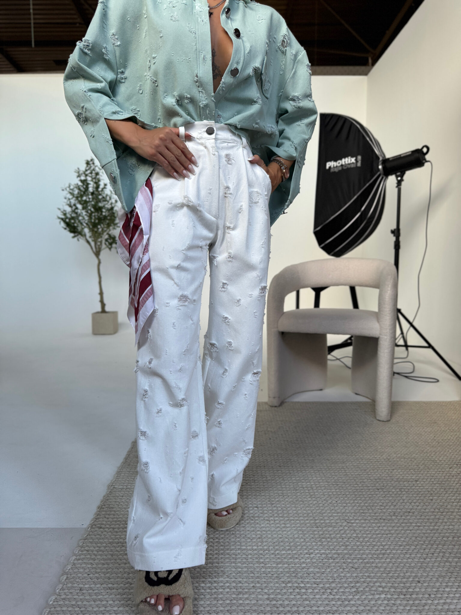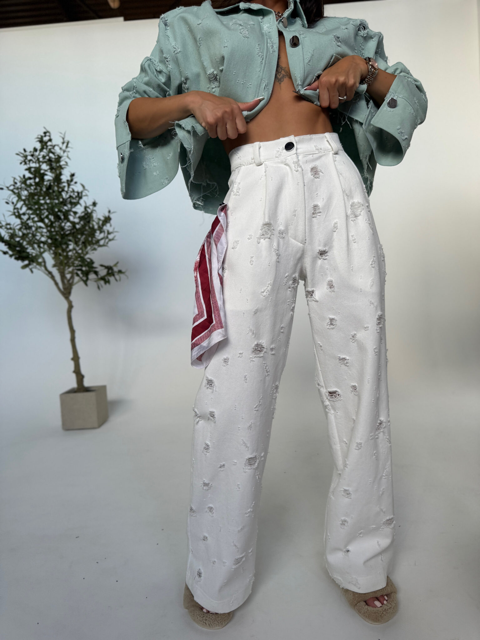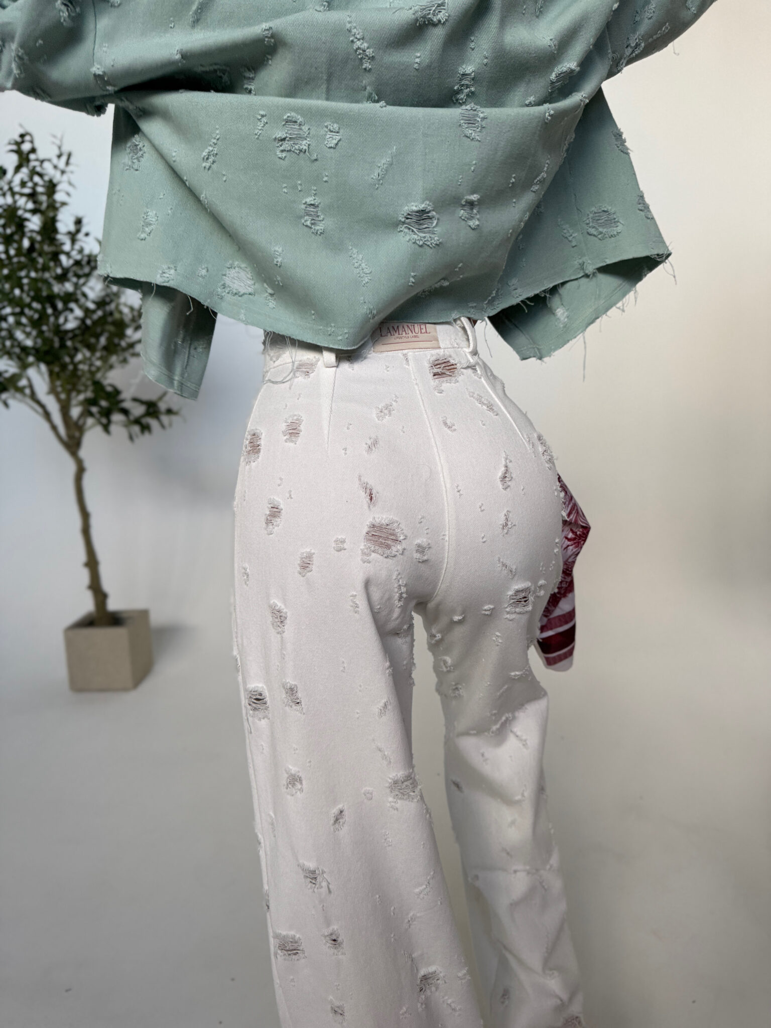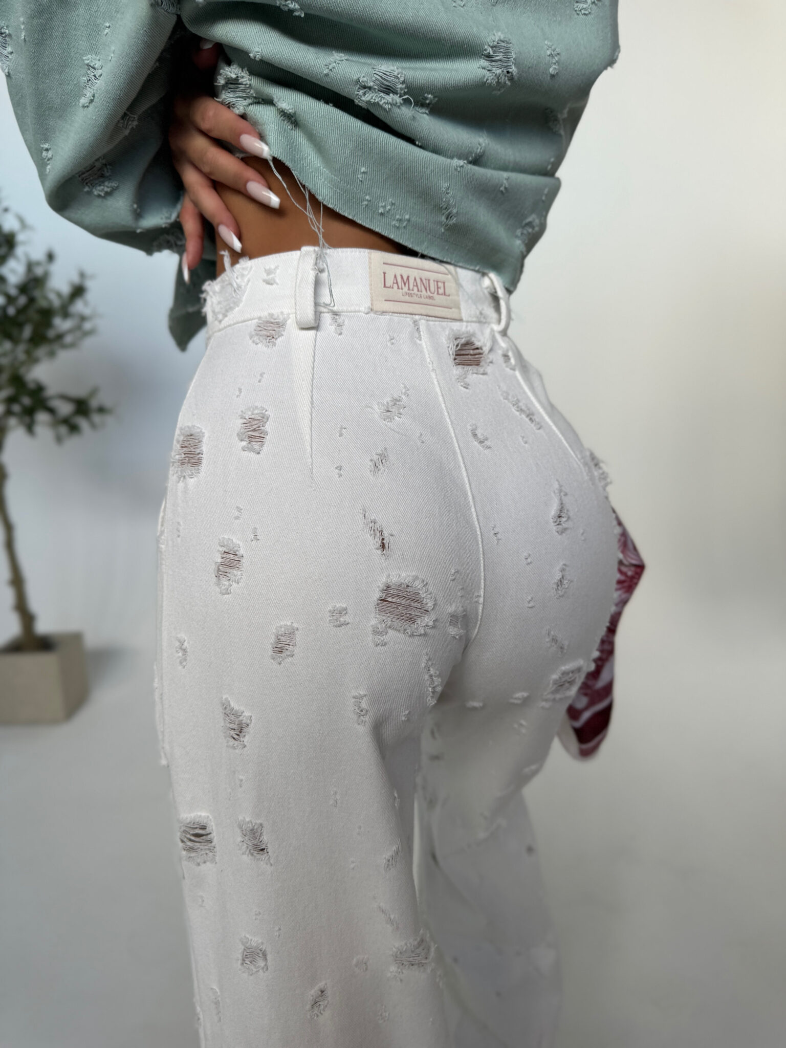 Jeansy o swobodnym, baggy kroju, który łączy luz streetwearu z dopracowanym wykończeniem. Wykonane z miękkiego denimu z wyraźną strukturą, z celowo postarzanymi przetarciami rozmieszczonymi nieregularnie na całej długości. Wysoki stan pięknie podkreśla talię, a klasyczne zapięcie na suwak i guzik zapewnia wygodę noszenia. Z tyłu naszyta metka LAMANUEL podkreśla charakter linii premium. Idealne do casualowych stylizacji – zarówno z krótkim topem, jak i luźną koszulą.Skład: 100% bawełna