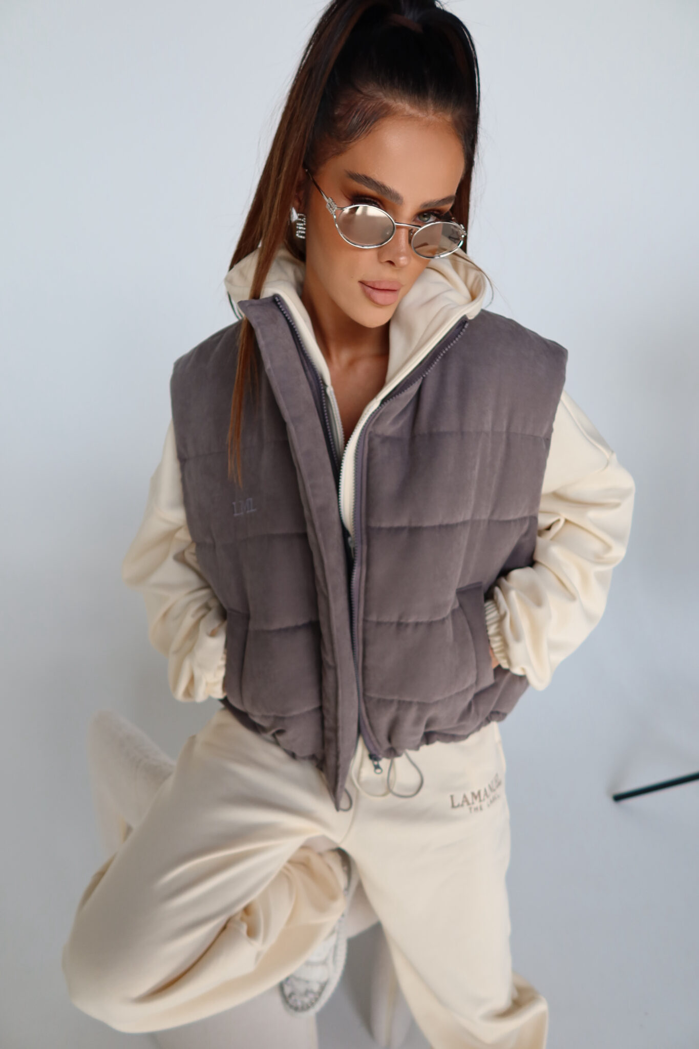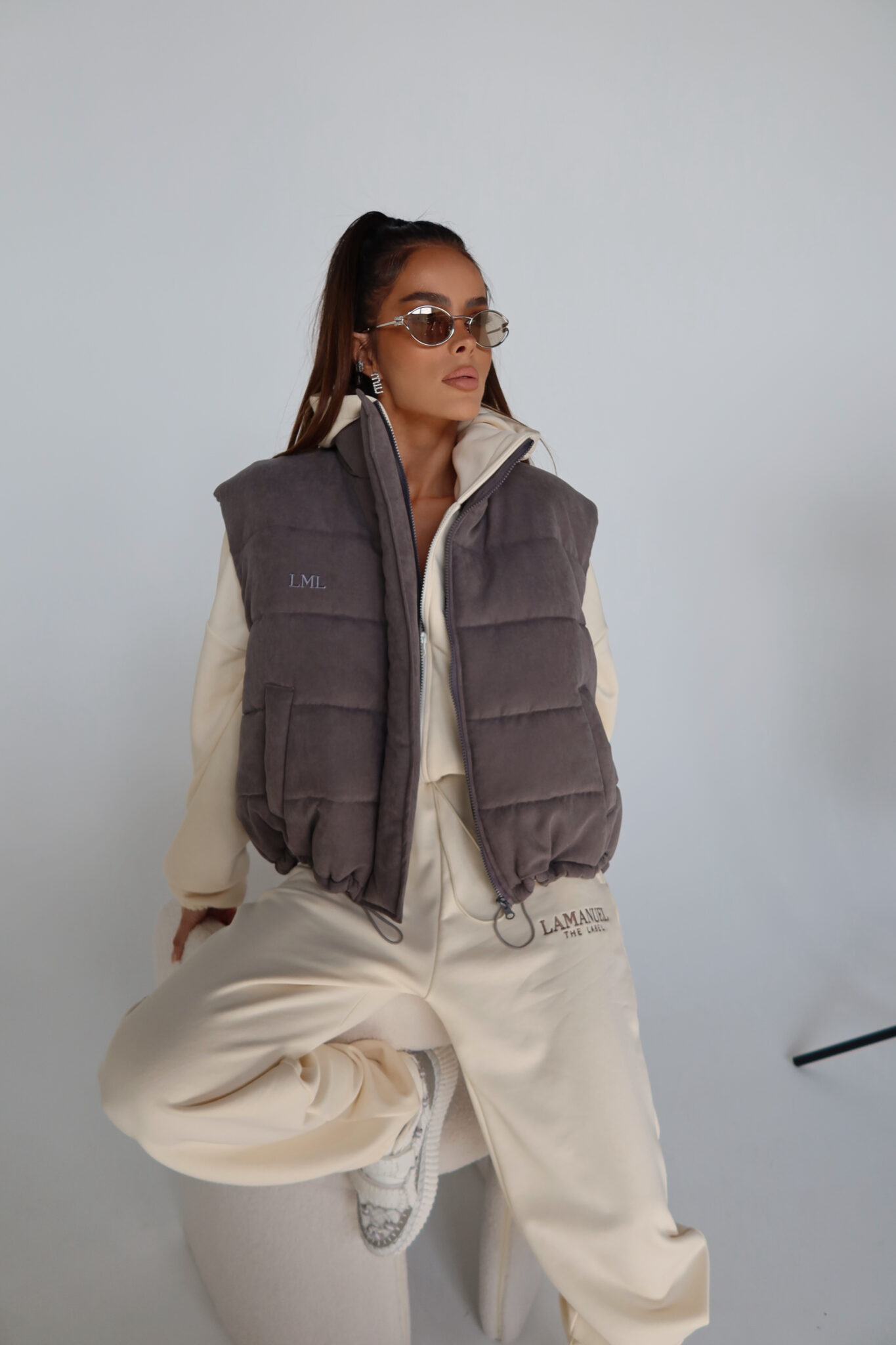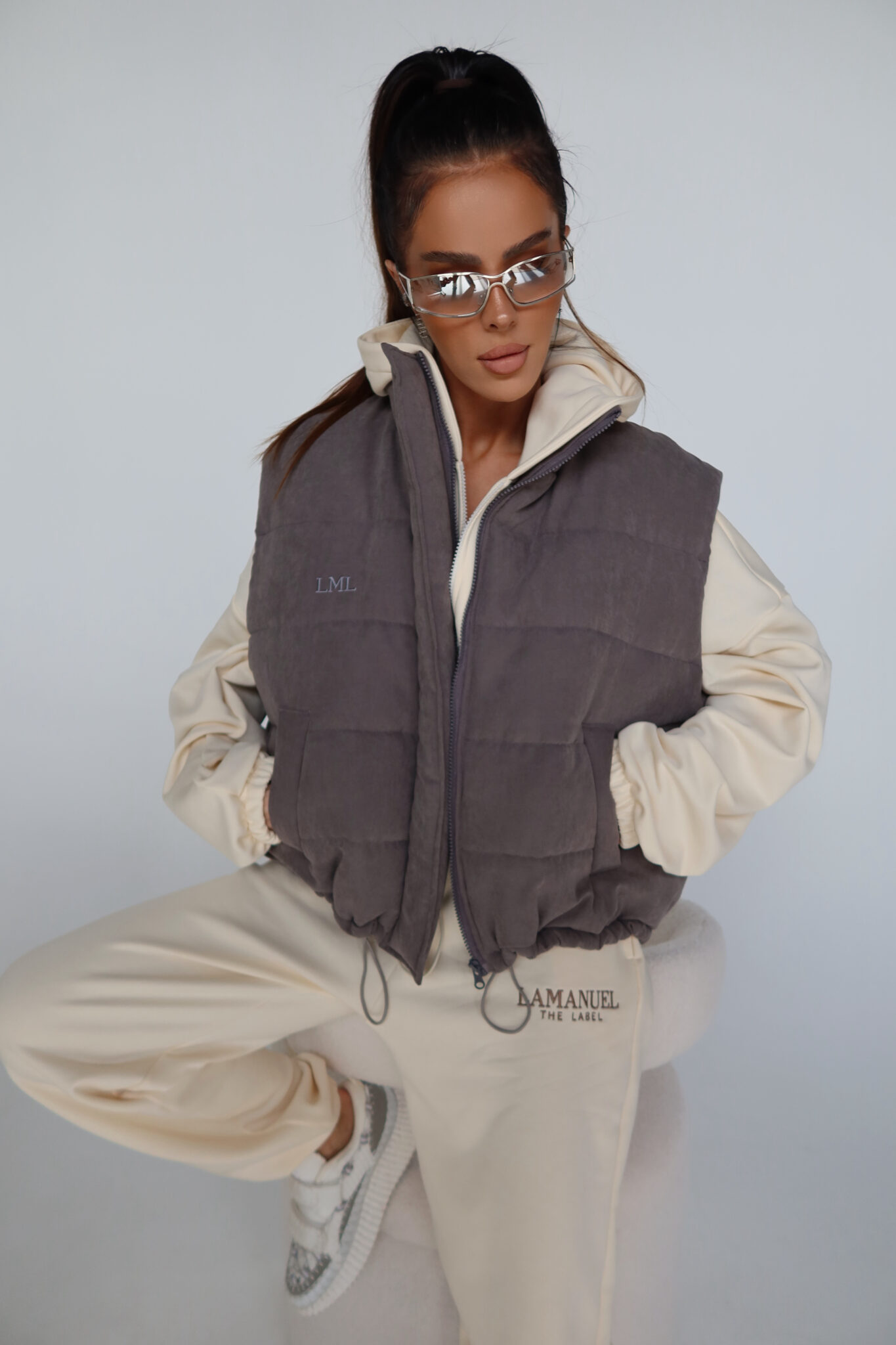 Pikowany bezrękawnik o przeskalowanym fasonie, który robi całą stylizację. Wyraźnie zabudowany kołnierz typu stójka dodaje charakteru i chroni przed chłodem. Model zapinany na zamek, z bocznymi kieszeniami i haftowanym logo LML z przodu. Wypełnienie nadaje mu miękkości i objętości, a zaokrąglony dół z regulacją pozwala dopasować długość i kształt do sylwetki. Idealny do noszenia na dopasowane bazy – tworzy mocny, streetowy look. Pasuje od rozmiaru XS do XL.Skład: 90% poliester 10% nylon