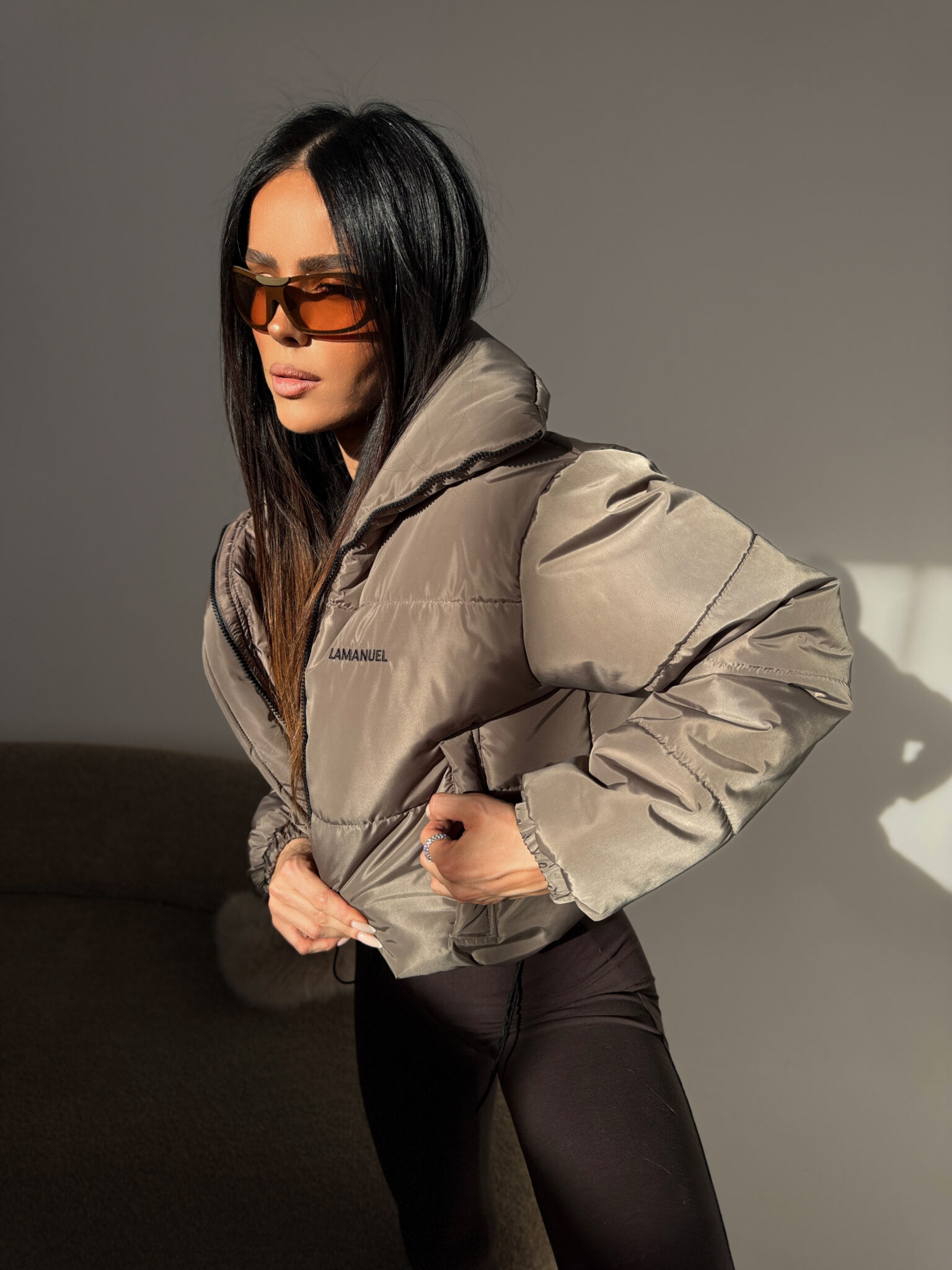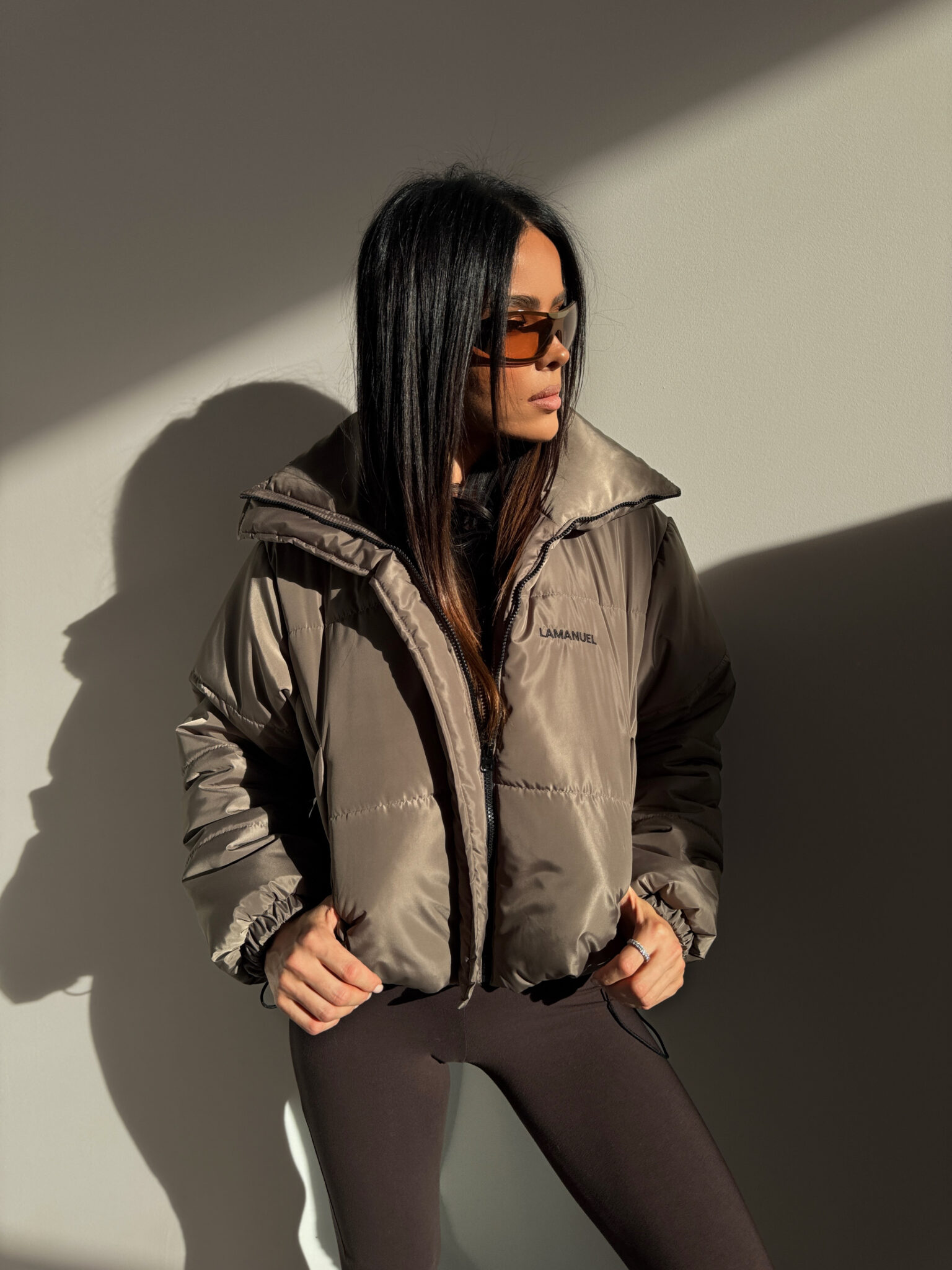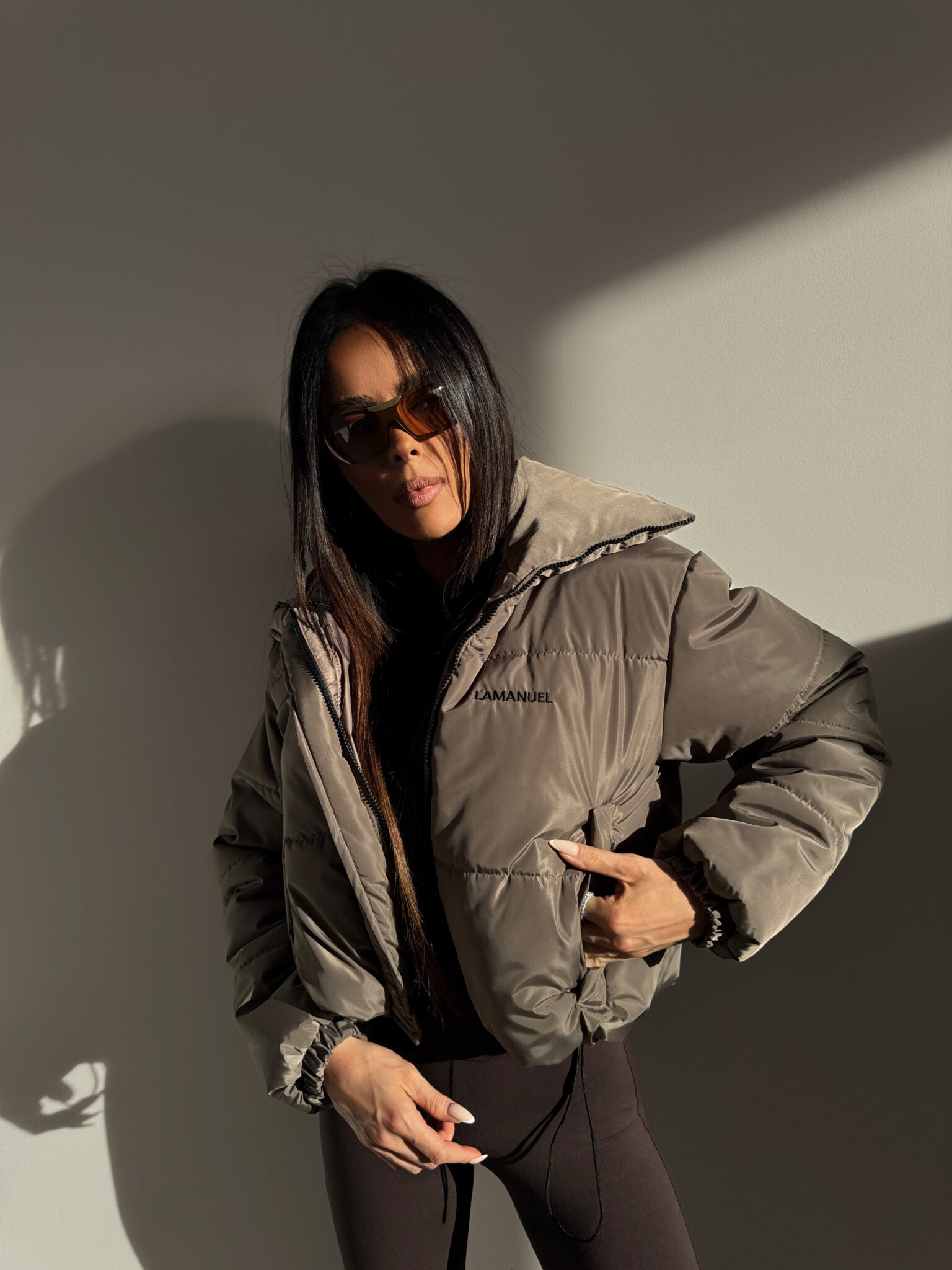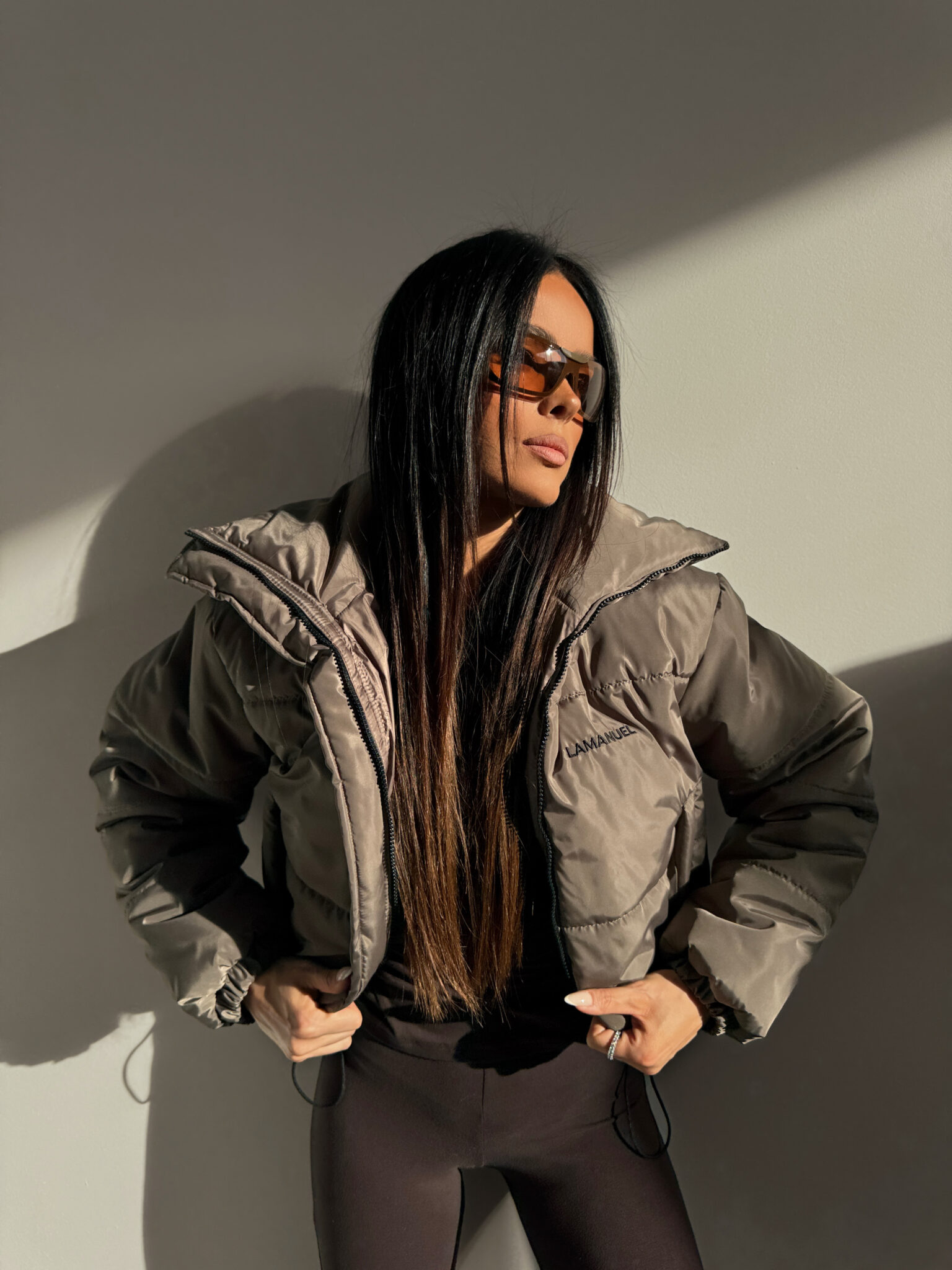 Zimowa kurtka o mocno wypełnionej formie i wysokim kołnierzu daje efekt oversize z wyczuciem, jest lekka, ale konkretna, z regulacją na dole i logo z przodu i z tyłu, czyli klasyk w stylu LAMANUEL – wygląda dobrze do legginsów, dresów, ale i masywnych butów, na co dzień, na luzie, ale zrobione.Skład: 100% poliester