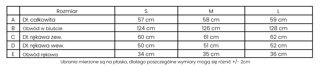• Zapięcie: Suwak oraz listwa z zatrzaskami