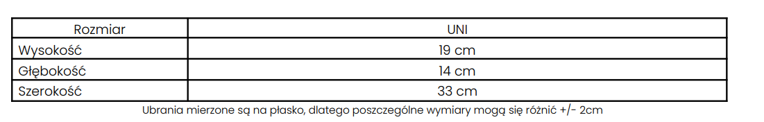 - Funkcjonalność: Regulowany pasek (do noszenia w talii lub crossbody)