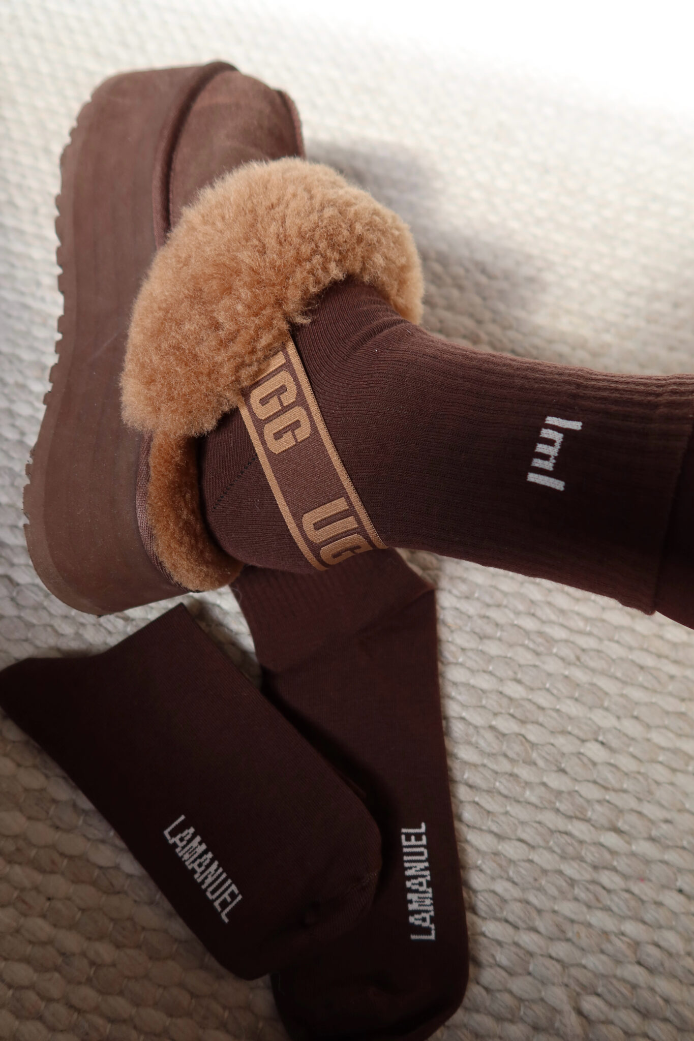 Ribbed skarpety wykonane z miękkiej, elastycznej bawełny z dodatkiem przędzy elastycznej, która zapewnia idealne dopasowanie do stopy. Ściągacz o średniej wysokości dobrze trzyma się łydki, nie uciskając. Minimalistyczne logo “lml” przy kostce i “LAMANUEL” na spodzie dodają charakteru w stylu sport-luxe. Idealne do sneakersów, workerów i botków – stylowy detal, który podkręca każdą stylizację.Pasują od rozmiaru 36-42
