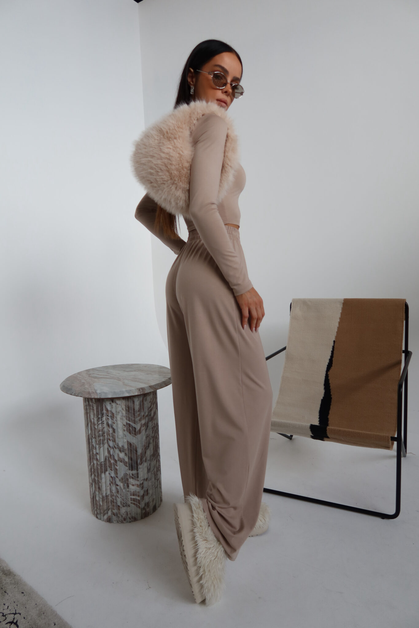 Luźne spodnie z modalu z wysokim, elastycznym stanem wykończonym szeroką gumą i metką z logo. Miękka, lejąca tkanina pięknie układa się na sylwetce i zapewnia pełną swobodę ruchów. Model z kieszeniami. Idealne zarówno do stylizacji domowych, jak i codziennych.Skład: 60% rayon 31% nylon 9% spandex