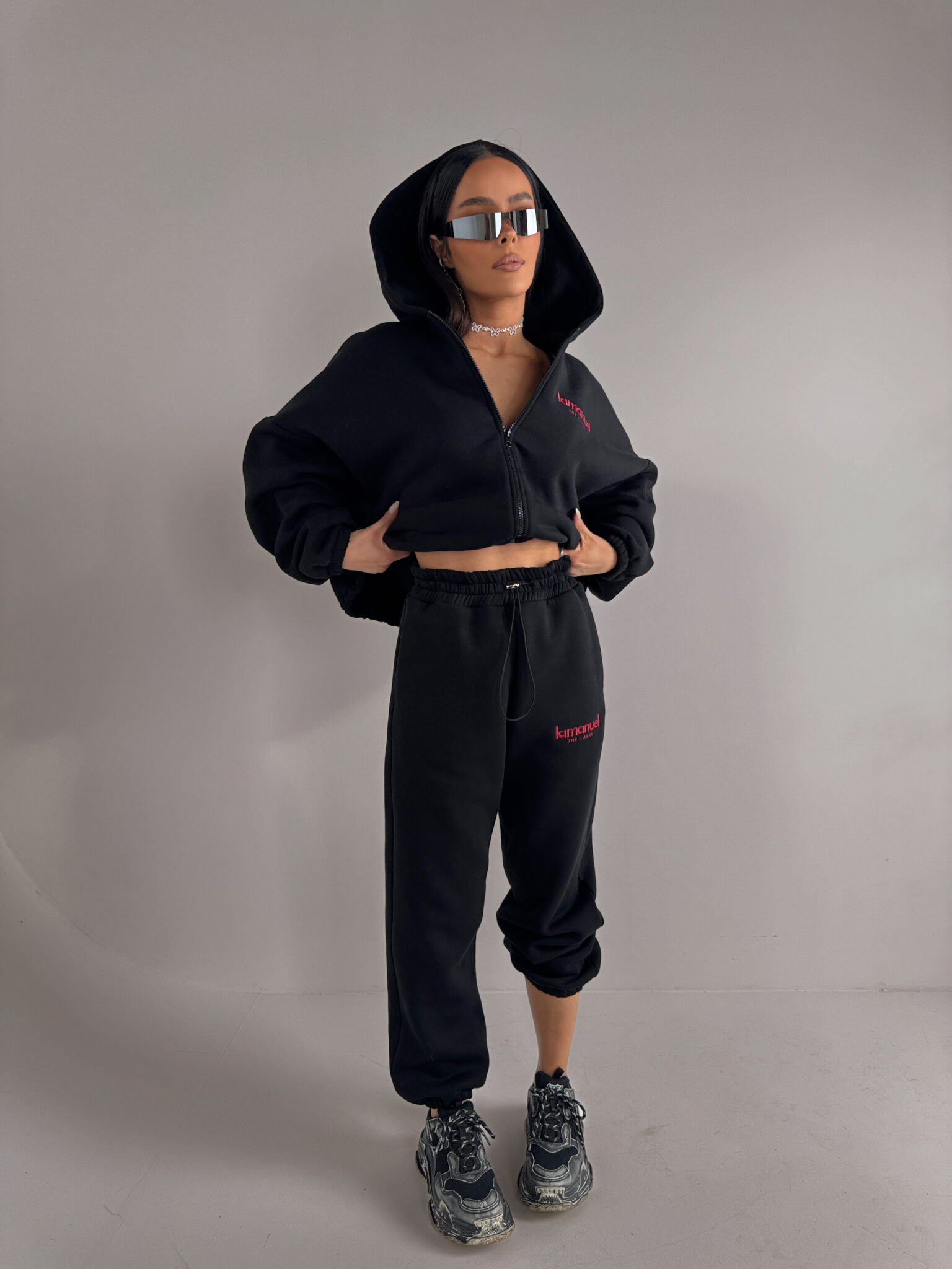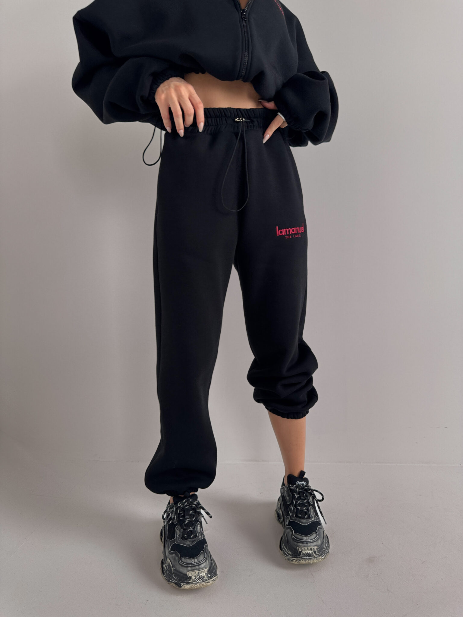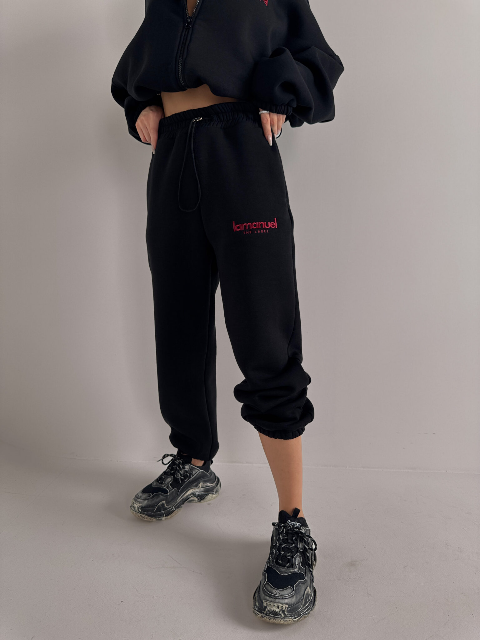 Oversize’owe spodnie z dzianiny drapanej to totalny chill level pro – grubszy materiał od środka to miękki „misiek”, który otula jak kocyk, ale nie wygląda jak piżama tylko jak dobrze przemyślany street look, mają wysoką talię z elastycznym pasem, luźną nogawkę i logo LAMANUEL, które robi robotę i daje ten detal, który od razu mówi: to nie są zwykłe dresy, to dresy z charakterem.Skład: 90% bawełna 10% poliester