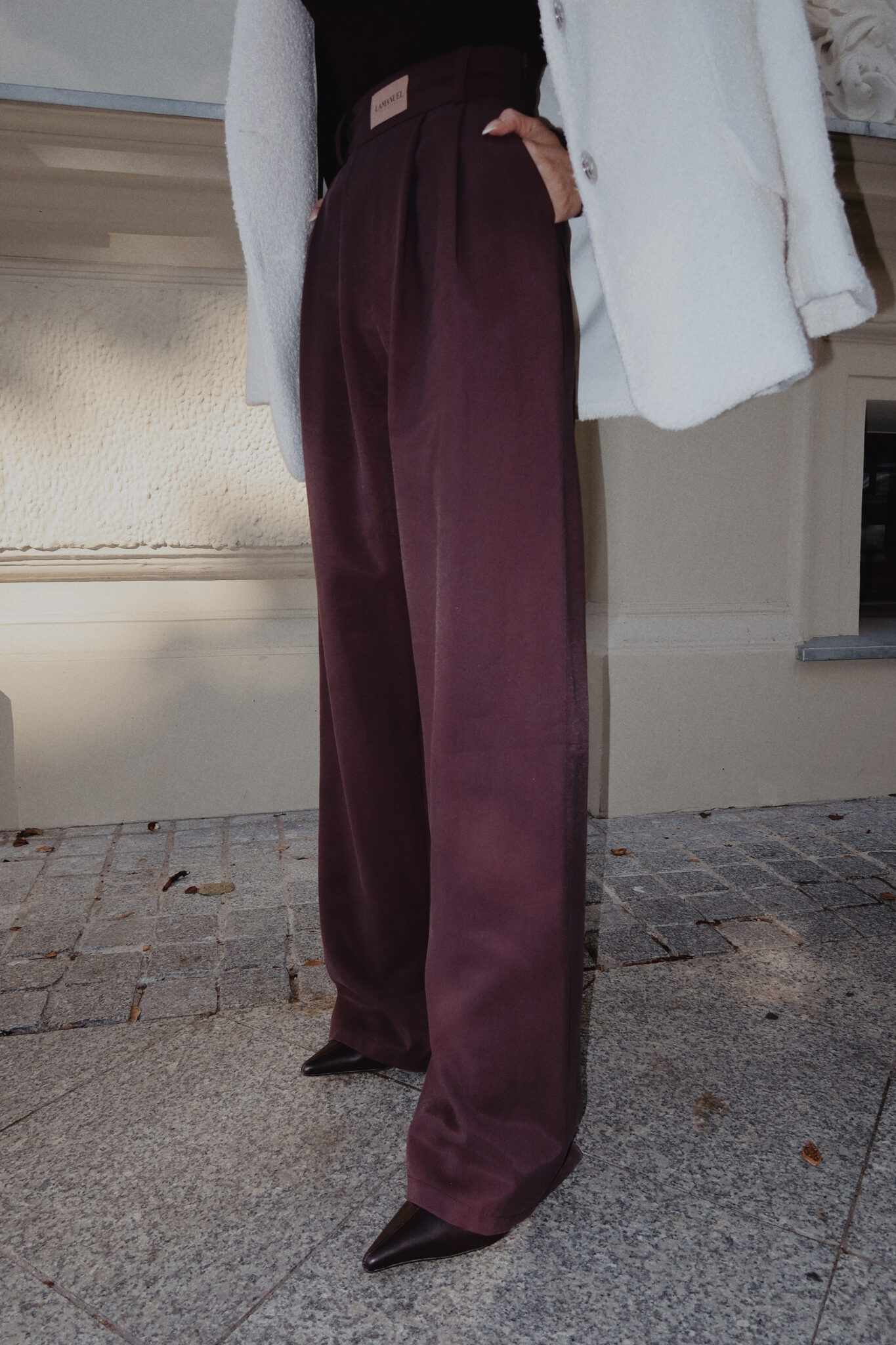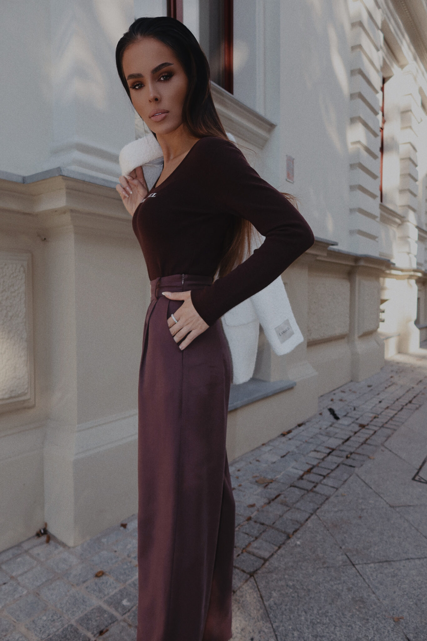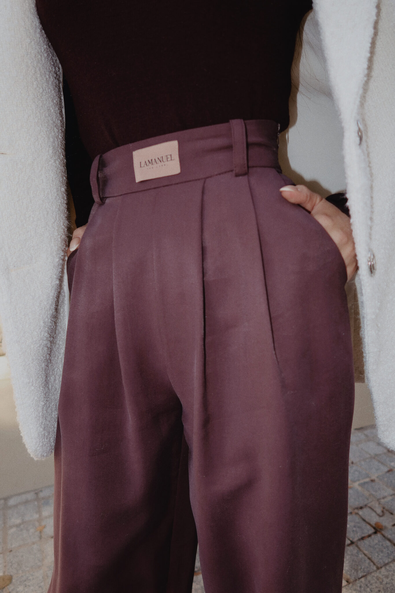 KOLOR LIMITOWANY!Elegancki fason z charakterem – szeroka nogawka, lekki połysk i zapinanie na suwak z boku, które podkreśla czystą linię talii. Plisy z przodu dodają im wyrafinowania, a dopracowana forma sprawia, że układają się idealnie w ruchu. To spodnie, które robią robotę w total looku, ale równie dobrze zagrają z basicowym topem czy grubym swetrem. Styl biurowy, wieczorowy albo casual w wersji premium – Ty decydujesz.Skład: 90% rayon 10% poliester