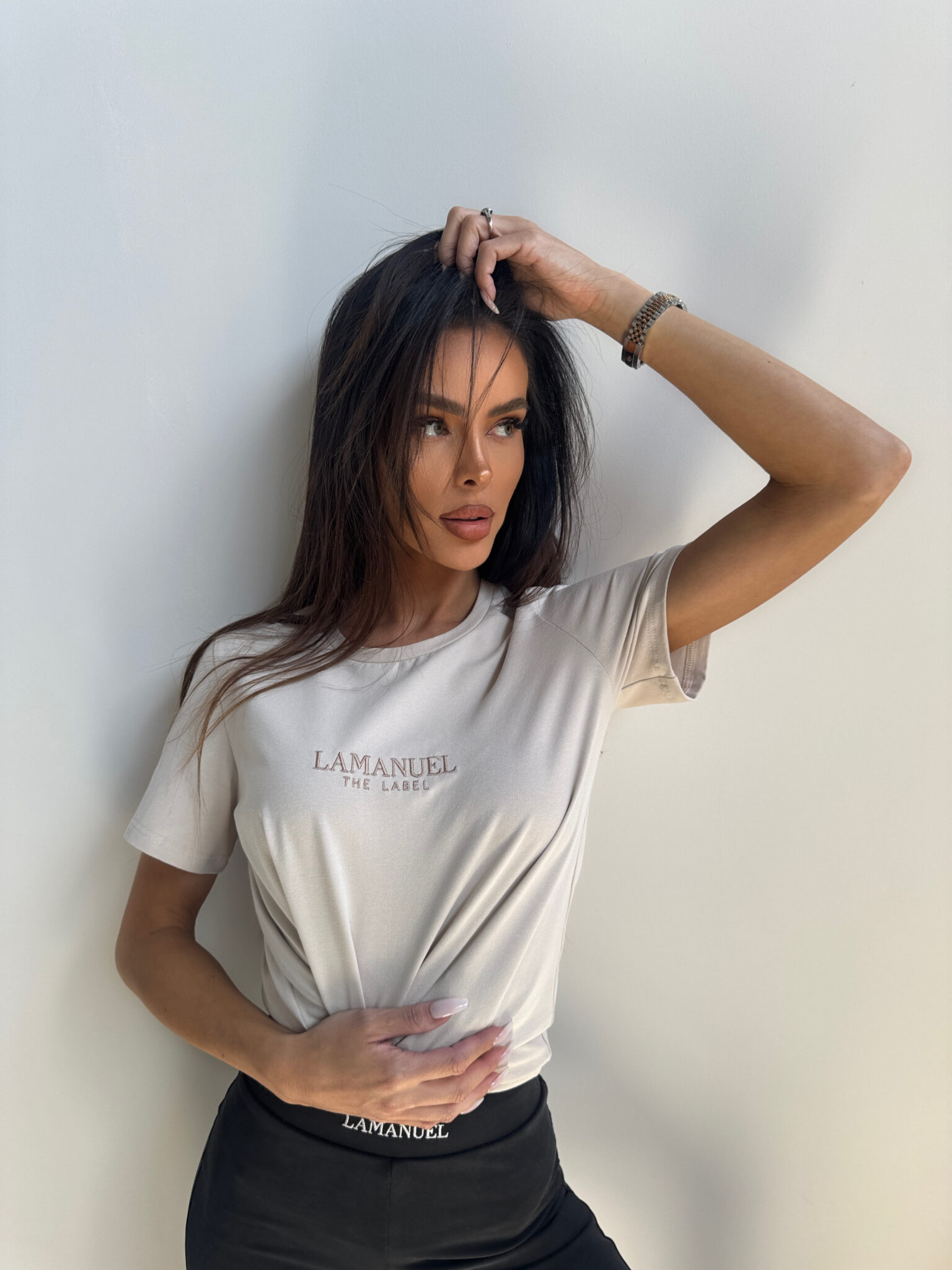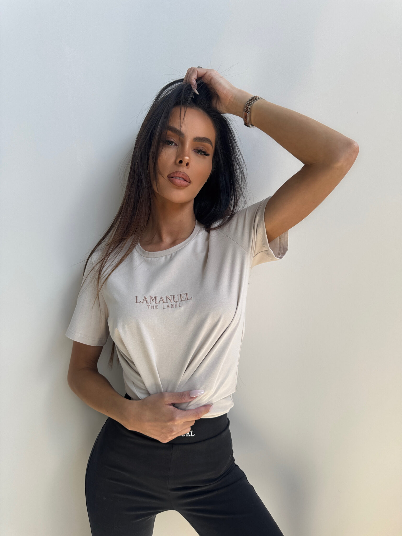 Klasyczny t-shirt o prostym kroju wykonany z miękkiej, elastycznej dzianiny. Model z okrągłym dekoltem, zakończony podwójnym szwem. Na piersi haftowane logo marki. Koszulka o standardowej długości – na zdjęciach przedstawiona w stylizacji z zawiniętym dołem. Idealna baza do codziennych zestawów.Skład: 100% bawełna