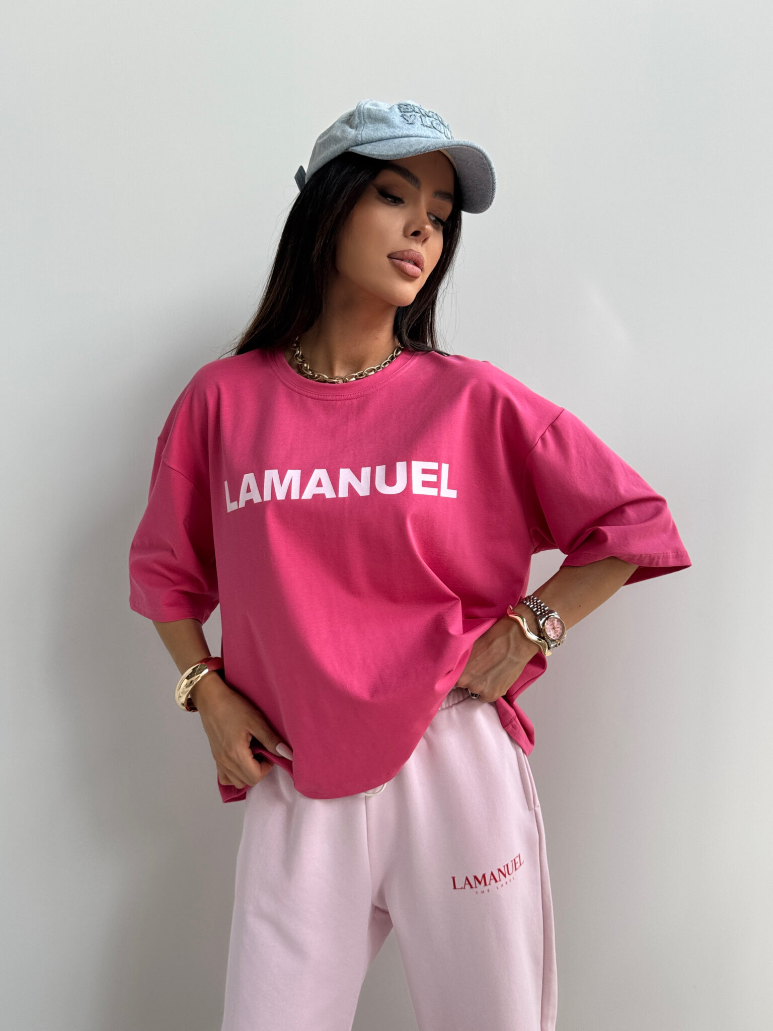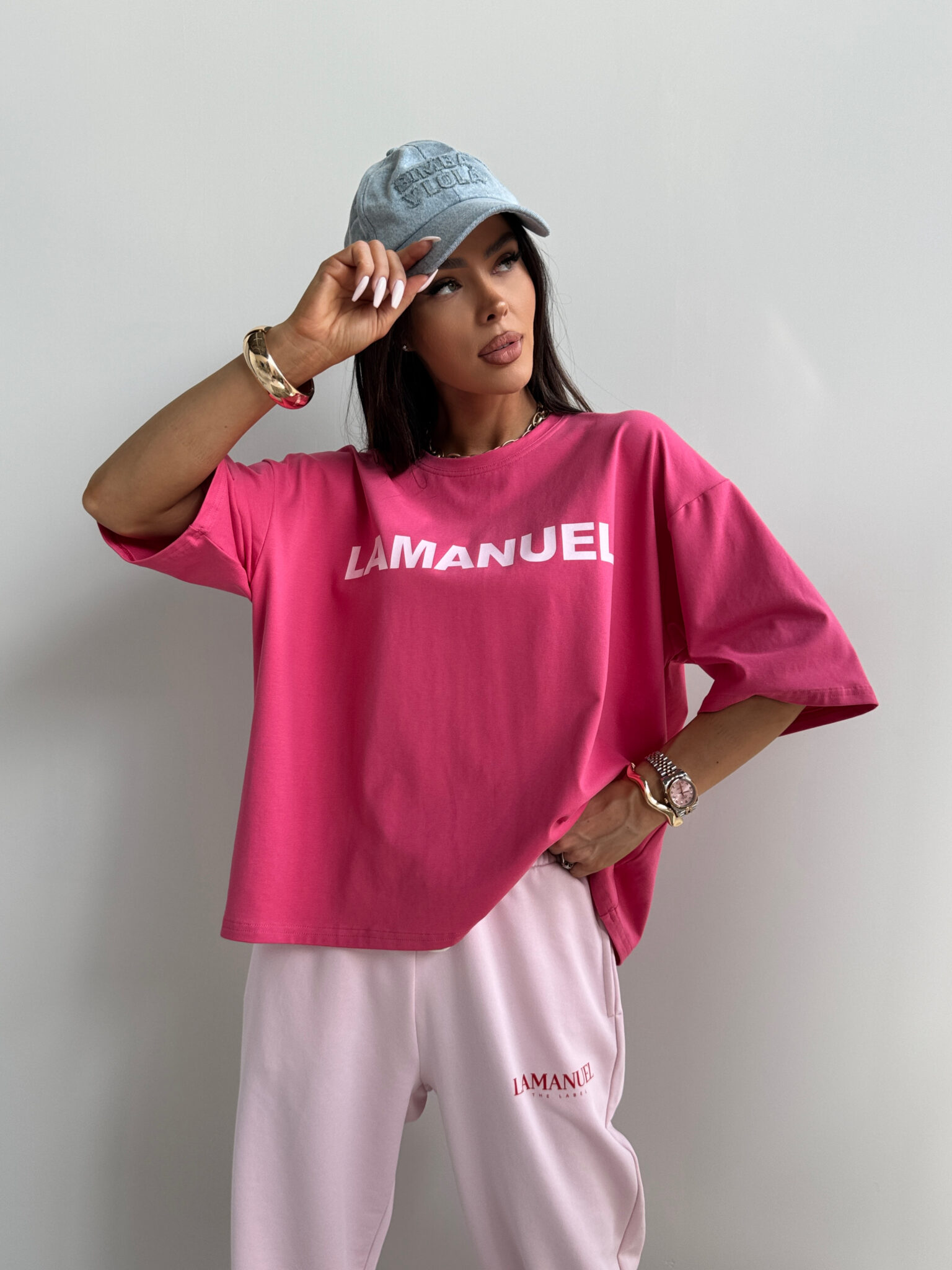 Oversize’owy T-shirt o luźnym kroju wykonany z wysokiej jakości bawełny, zapewniającej wygodę noszenia i swobodę ruchów. Prosty fason z lekko obniżoną linią ramion, który świetnie układa się na sylwetce i pasuje do różnych stylizacji – zarówno sportowych, jak i bardziej casualowych. Na przodzie nadrukowane logo LAMANUEL w kontrastowym wykończeniu, które przyciąga wzrok i nadaje charakteru. T-shirt sprawdzi się zarówno w zestawieniu z dresami, legginsami, jak i z jeansami czy szortami.Skład: 100% bawełna